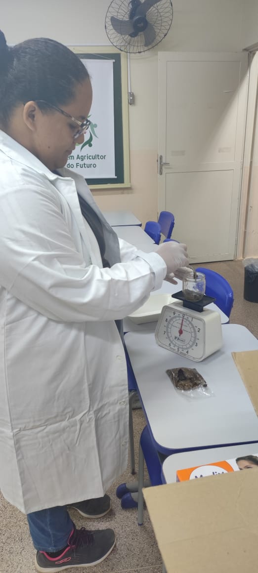 Já com o 2º ano, utilizou o mesmo material para trabalhar sobre o potencial hidrogeniônico (PH) e análise da água, no qual também trouxe o debate sobre sustentabilidade. Como atua em uma área rural, sem água encanada, teve a oportunidade de abordar ainda a parasitologia e o risco que correm devido às condições.
