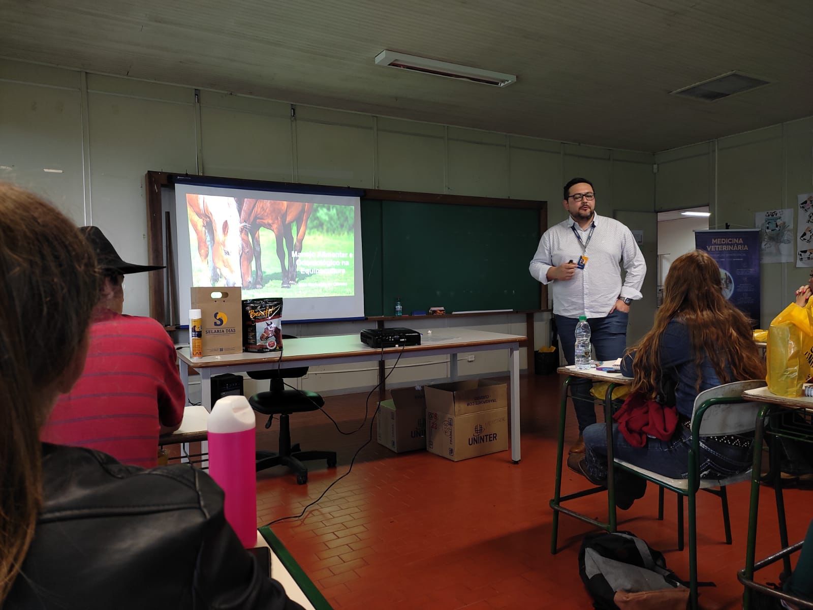 No primeiro dia de participação, o coordenador palestrou aos alunos do terceiro ano do ensino médio sobre a abordagem técnica da profissão, com o manejo odontológico de equinos, além de contextualizar a prática de atendimentos, a rotina clínica e a relação com os proprietários. O médico veterinário diz que são “conhecimentos que os livros ainda não trazem e que só podem ser vivenciados quando se põe a ‘mão na massa’”.