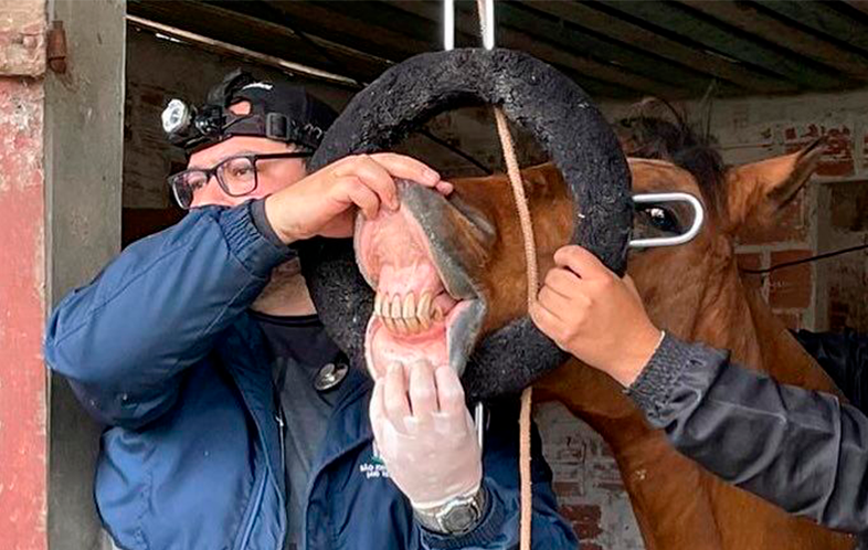 Já no dia seguinte, foi realizada a parte prática do workshop, em que o professor atuou no procedimento de odontoplastia em três equinos de estudantes do próprio colégio, “garantindo bem-estar e sanidade bucal aos animais”.