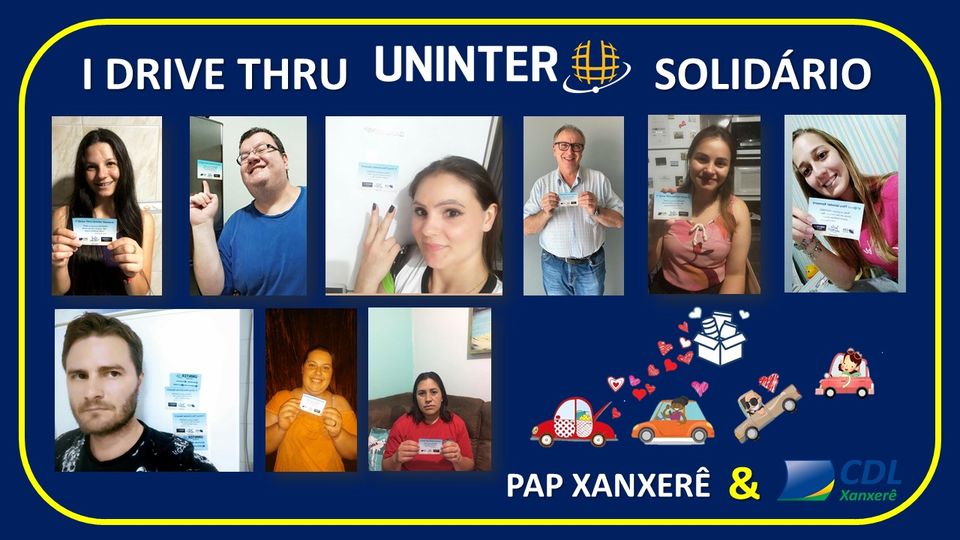 Aproveitando essa alternativa, que é uma forma de aproximar as pessoas nesse contexto, tomando todos os cuidados necessários, o polo de apoio presencial (PAP) da Uninter em Xanxerê (SC) realizou, no dia 06.10.2020, o 1º Drive Thru Solidário Uninter, intitulado “Pela criança que ainda existe em mim”, o qual contou com o apoio da Câmara dos Dirigentes Lojistas (CDL) do munícipio. O intuito da ação solidária foi arrecadar doces, destinados a crianças e adolescentes em vulnerabilidade, acolhidos na região.