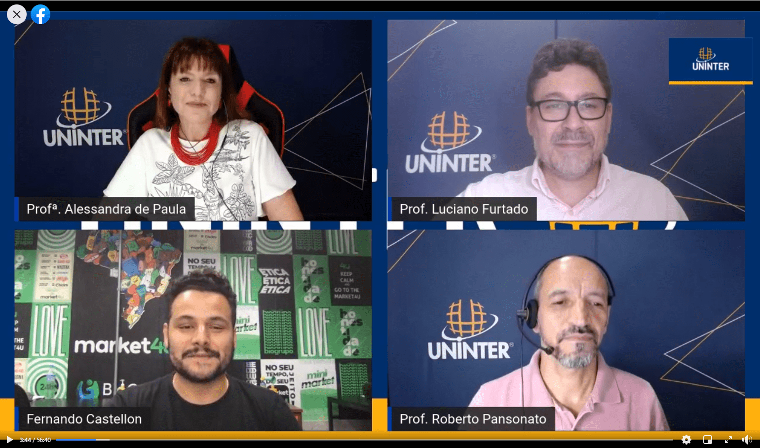 No último dia 27.nov.2020, em transmissão ao vivo pela página do Facebook do Grupo Uninter, ocorreu a palestra “A importância das datas comemorativas para o e-commerce e como elas podem ser fundamentais no aumento das vendas”, com mediação de Alessandra de Paula, coordenadora do curso de Gestão de E-commerce e Sistemas Logísticos e Logística da Uninter, e participação dos professores da Uninter Luciano Furtado e Roberto Pansonato. O evento fez parte da Maratona “Venda + Na Black Friday”, que teve 12 horas de duração, organizado pela Escola Superior de Gestão, Comunicação e Negócios.