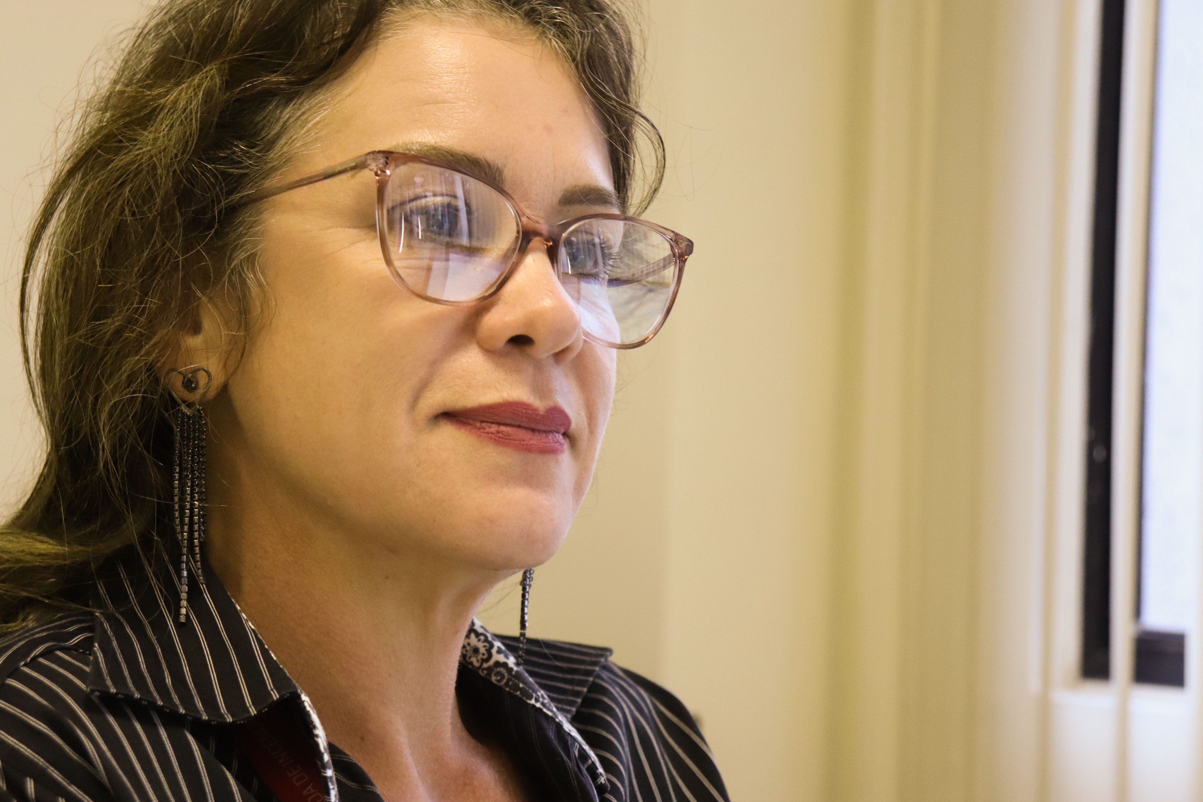 Durante a formação havia uma disparidade de gênero, tanto entre os alunos quanto entre os professores. As colegas de classe eram poucas, e ela só teve uma professora durante os quatro anos de graduação, realidade que mudou na especialização em Planejamento e Gestão Estratégica. Durante a pós, realizada entre 2005 e 2006, havia a mesma quantidade de homens e mulheres ministrando as aulas, e também como estudantes.