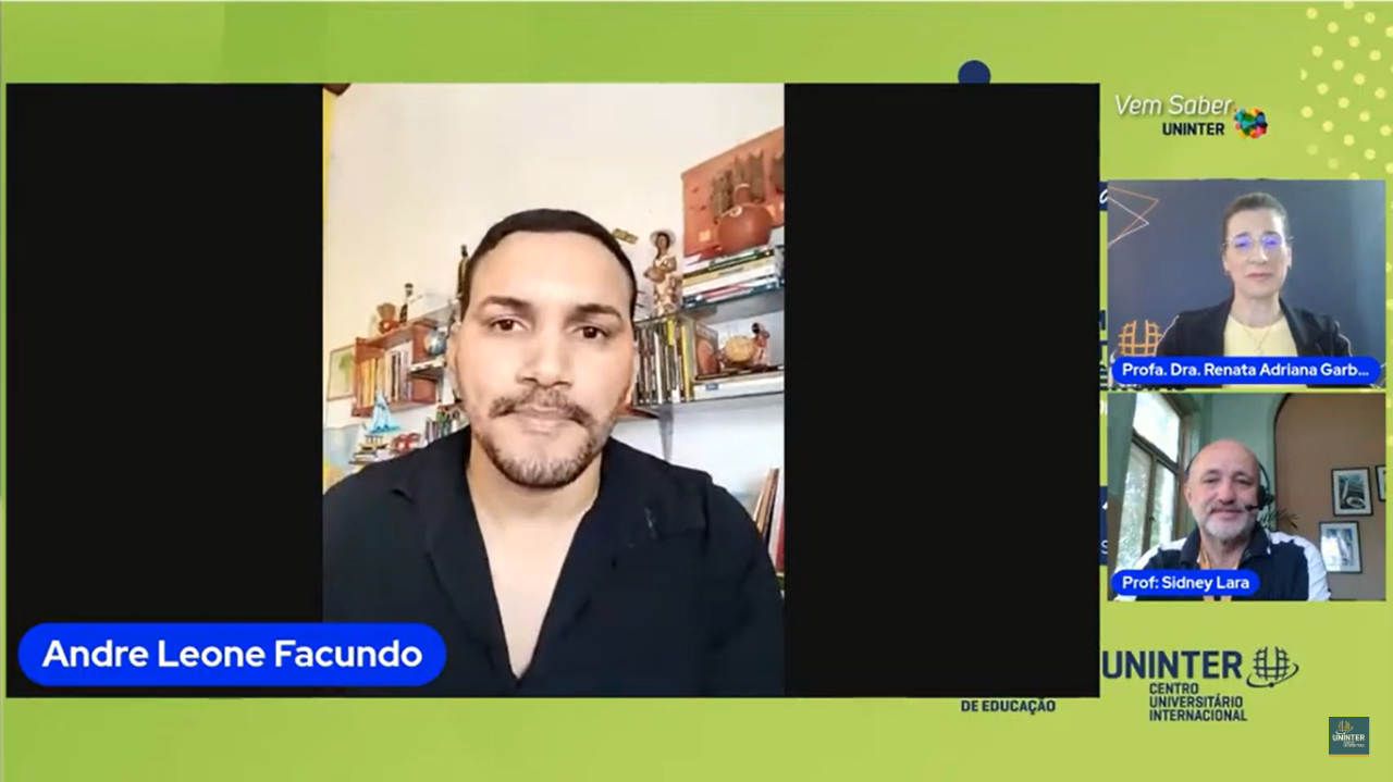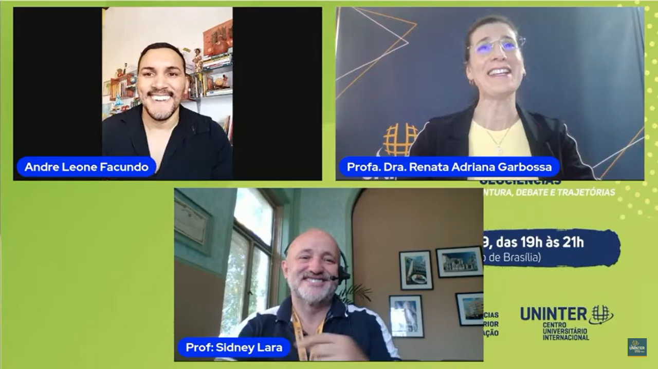Durante a transmissão, André também destacou a importância da área acadêmica da instituição. “A ciência está sendo feita, a gente está pesquisando e a Uninter, sim, é um grande espaço para gente poder dar o pontapé inicial na nossa vida acadêmica e profissional’’, declarou, ressaltando também a importância de professores estarem em constante processo de aprendizado. “A Geografia está acontecendo e nós somos esse espaço também. Se dinamizem, estudem, pesquisem. Sejam bons professores, porque é isso que a gente e o Brasil merecem: bons professores’’, finaliza Facundo.