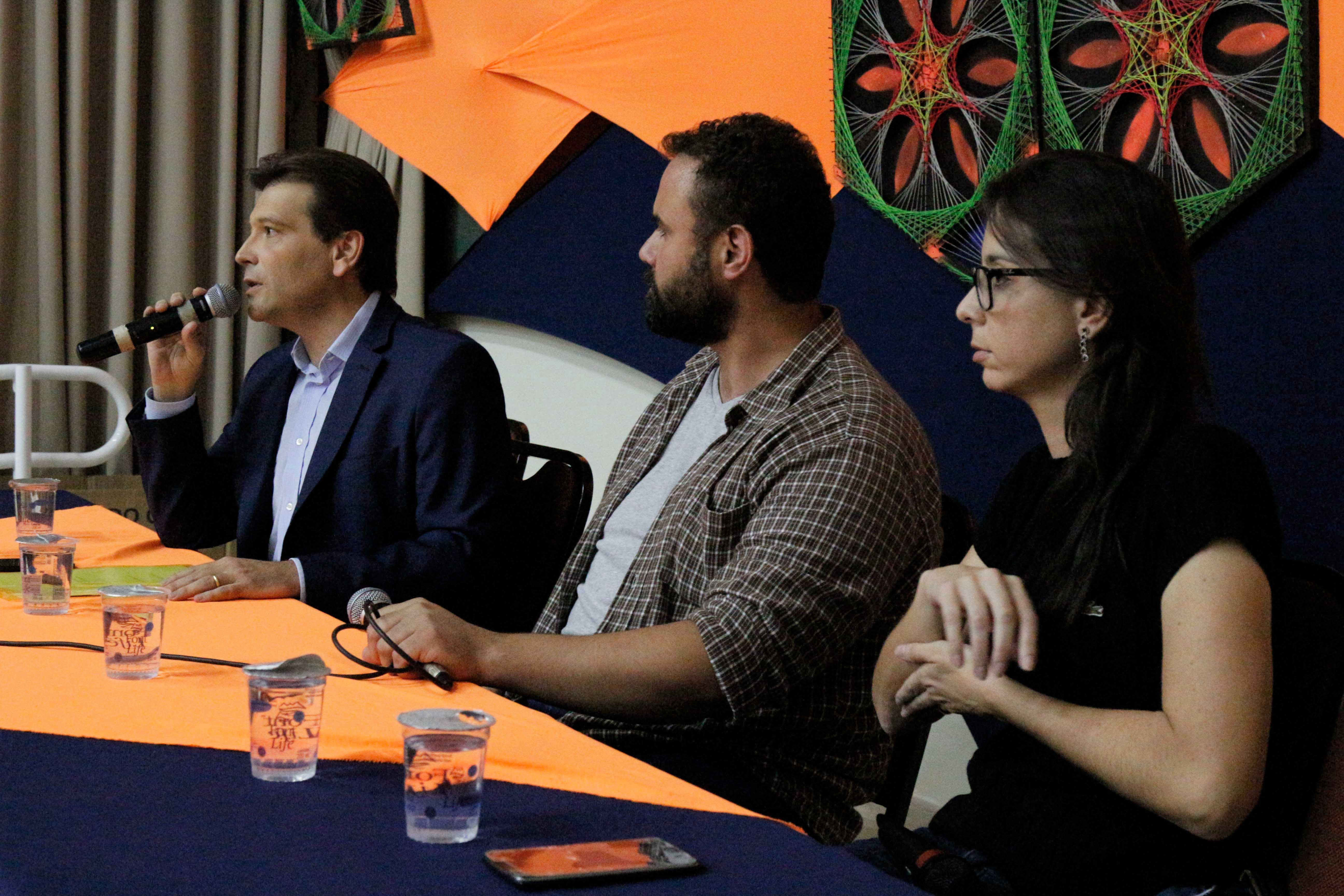 Nomes conhecidos do jornalismo paranaense fizeram lotar o auditório do campos Tiradentes da Uninter, em Curitiba, para dar dicas de sucesso profissional no último dia da 7ª Semana de Comunicação Uninter, na noite do dia 23 de novembro. Estiveram presentes a repórter do Globo Esporte Nadja Mauad, o apresentador do Cidade Alerta Paraná, Paulo Gomes, e o radialista Luiz Fernando, do Boa da Pan. Com o auditório lotado, os palestrantes iniciaram um bate-papo animado.