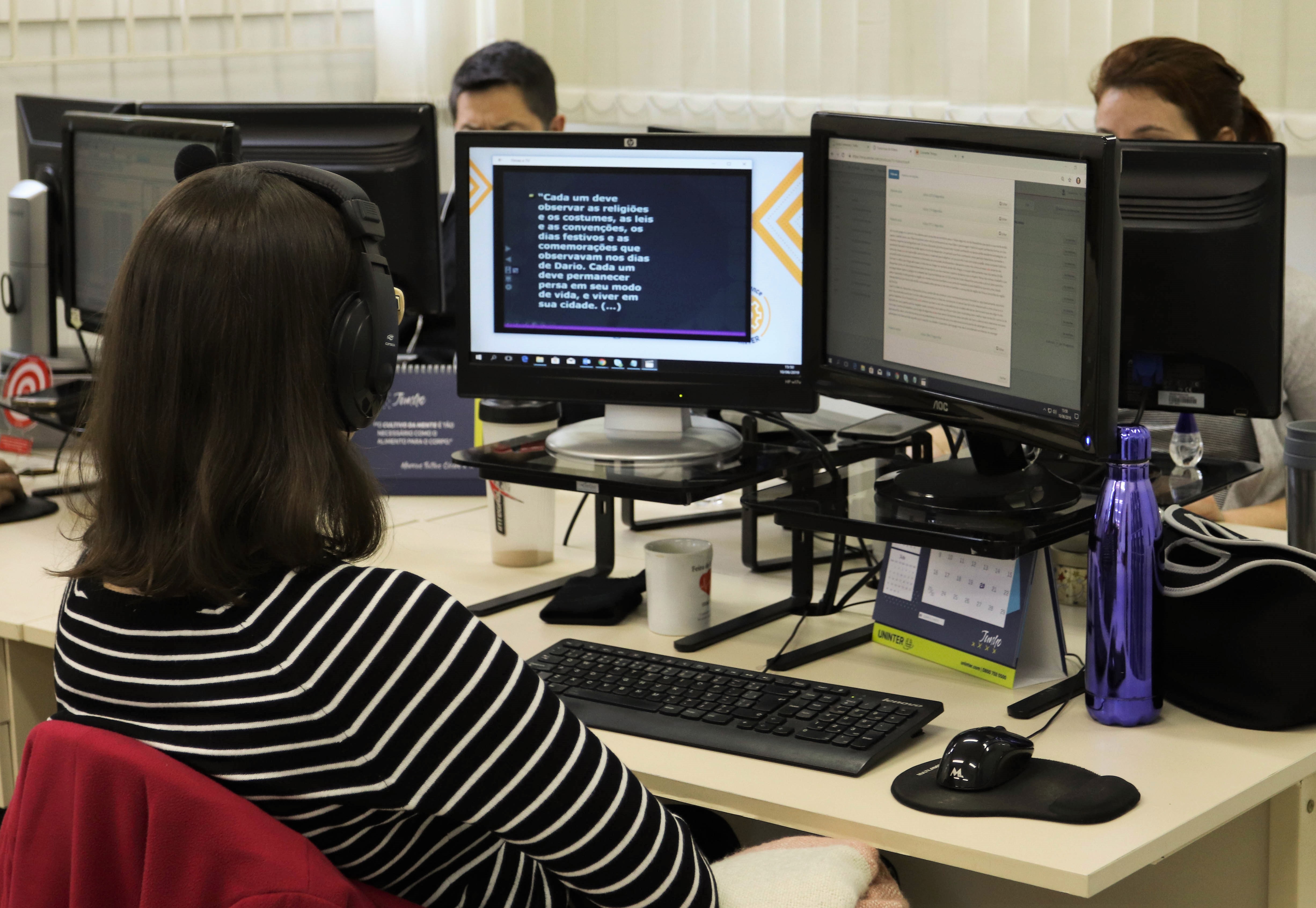 Fazem parte das atividades do setor de produção multimídia o desenvolvimento de arquivos em PDF das rotas de aprendizagem, slides das aulas gravadas e conteúdos dialógicos (textos que apresentam os vídeos de aulas dos professores).