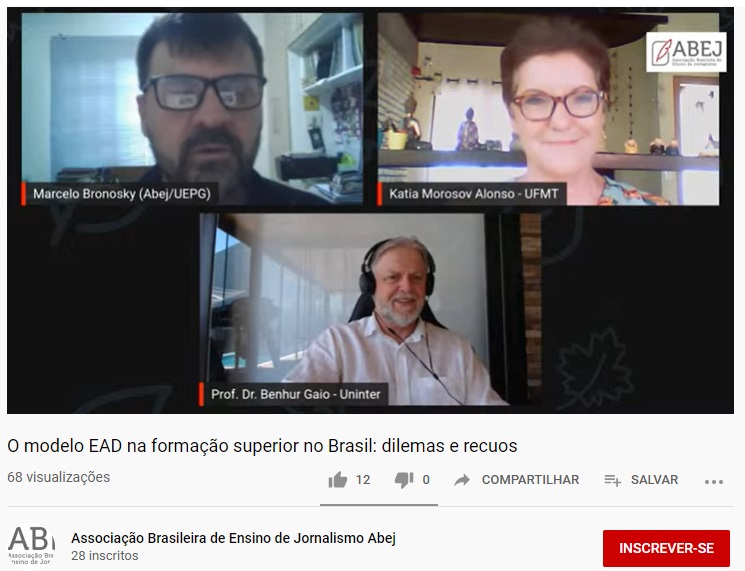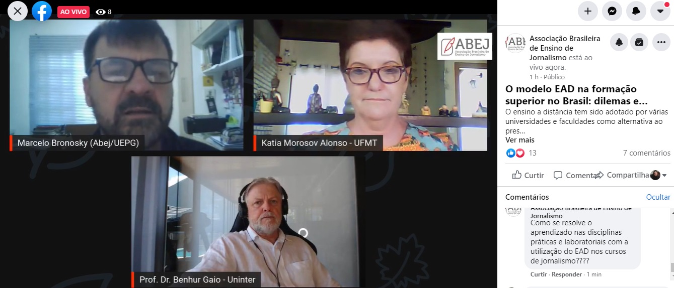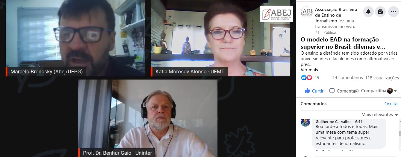 Sendo assim, a Abej realizou um evento promoveu um debate sobre a questão com as presenças de Benhur Gaio, reitor da Uninter, e da professora Katia Alonso, que é mestre em educação e atua na Universidade Federal do Mato Grosso (UFMT). Intitulada O modelo de EAD na formação superior no Brasil: dilemas e recuos, a live foi transmitida através do Facebook e Youtube.