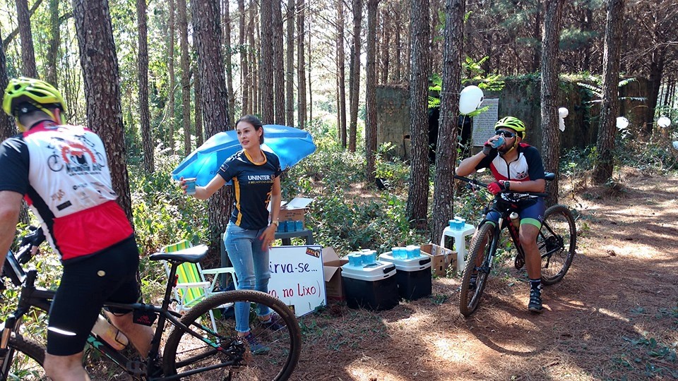 O trajeto foi realizado em uma trilha na qual os ciclistas se deparavam com subidas, descidas, travessia de rios e belas paisagens no meio da mata. Jéssica Bianchi, aluna do curso de Educação Física da Uninter participou entregando mantimentos aos atletas.