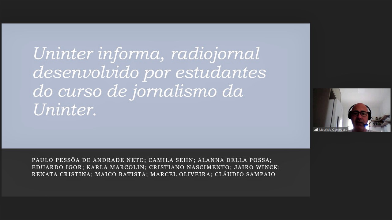 Mauricio Geronasso, aluno responsável por apresentar o trabalho, participou de uma mesa de debate de exposição de ideias e perspectivas quanto ao jornalismo nas modalidades rádio e impresso. Ele expos o material junto de demais trabalhos de todo o Brasil.
