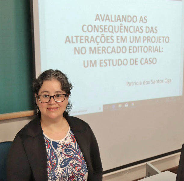 A aluna Patricia Oga, do curso de Administração, apresentou o trabalho “Avaliando as consequências das alterações em um projeto no mercado editorial: um estudo de caso”. Ela explica que sua pesquisa foi desenvolvida no trabalho de conclusão de curso (TCC).