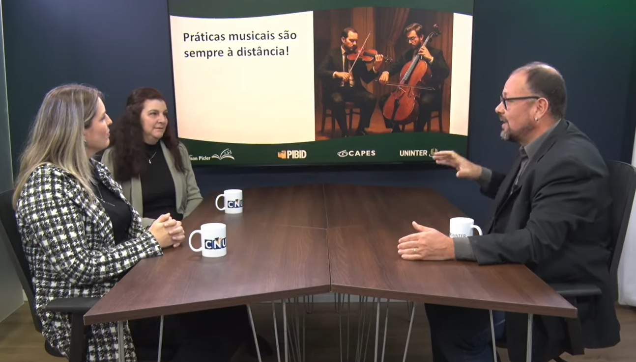 Realizada no dia 28 de agosto, a mesa contou com a mediação do professor Alysson Siqueira e a participação das professoras Jeimely Heep Bornholdt e Florinda Cerdeira Pimentel. Os três compõem o corpo docente do curso de Licenciatura em Música da Uninter.