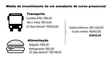 Para estudantes de Curitiba, por exemplo, onde o transporte coletivo custa R$6 por passagem, mais da metade de um salário-mínimo seria destinado apenas para os estudos. Considerando que o aluno seja matriculado em uma instituição pública, o que não é a realidade da maioria das universidades estaduais e federais.