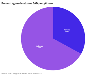Segundo dados da Educa Insights de 2022, 67% dos acadêmicos em EAD são mulheres, contra apenas 33% homens. A realidade da mulher brasileira e a cultura do “terceiro turno” contribuem para que estes números sejam tão elevados. Muitas estudantes acabam engravidando, construindo família e entrando no mercado de trabalho, o que torna o sonho de uma graduação completamente impossível na metodologia presencial que chega a exigir mais de 6 horas por dia, somando o tempo de deslocamento até os campi.