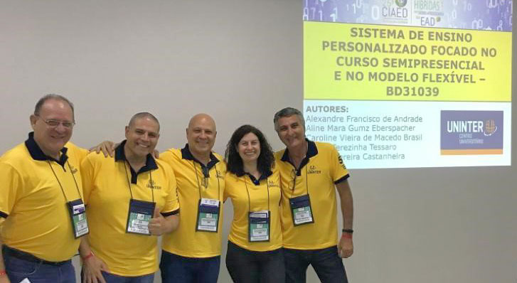 Os professores Antonio Siemsen Munhoz, Neliva Terezinha Tessaro e Nelson Pereira Castanheira produziram um trabalho intitulado “Portaria Mec 1.428: Revalorização do uso da EAD em cursos presenciais e fortalecimento do uso da aprendizagem híbrida”, que foi apresentado em forma de pôster.