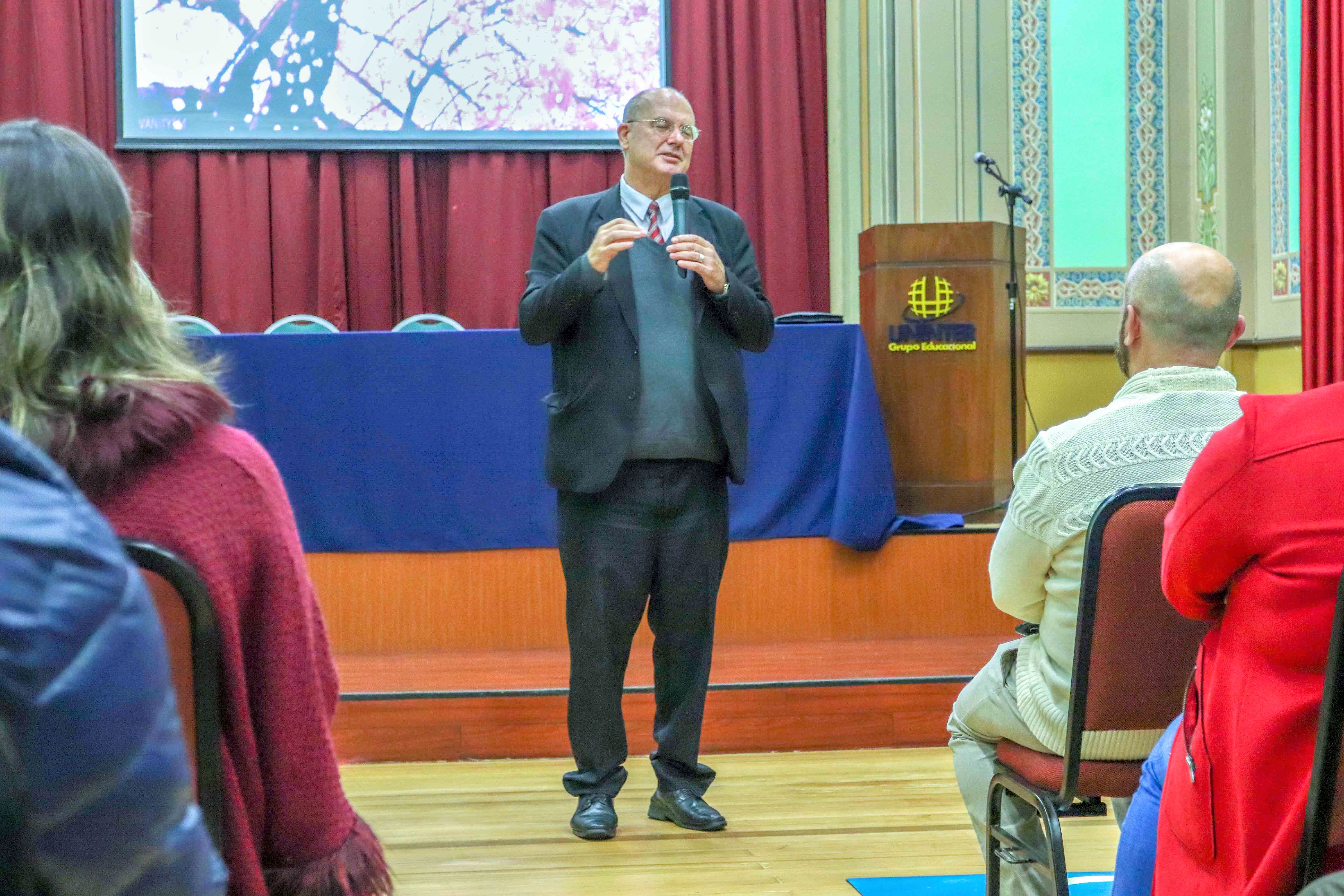 No dia 27 pela manhã, o diretor da Escola de Saúde, Biociência, Meio Ambiente e Humanidades, Rodrigo Berté, abriu o evento com a palestra “Neurolinguística e a Neurociência, conheça-te a ti mesmo”. A fala, que ocorreu na sede da Uninter em Campo Largo (PR), foi dirigida aos colaboradores da Secretaria Acadêmica e da Logística.