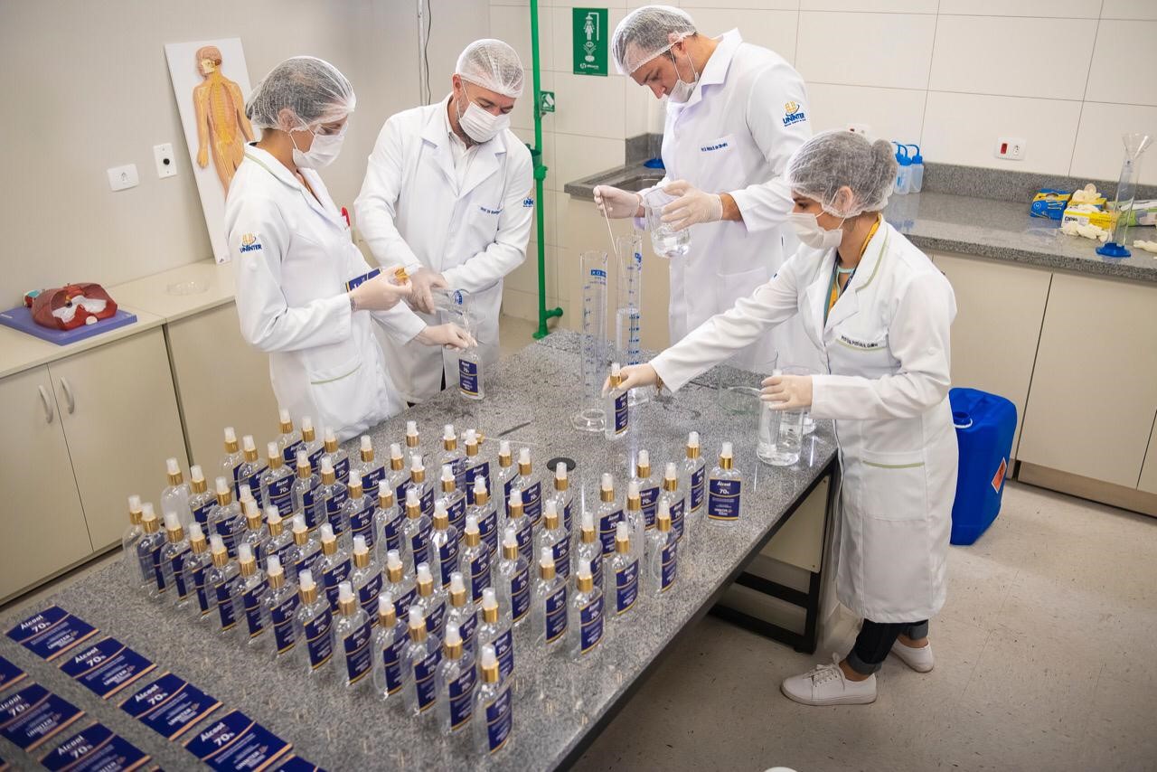 Escola de Saúde da Uninter produz álcool 70% e doa para forças de segurança
