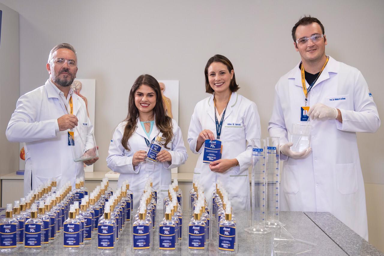Nesta primeira fase, foram produzidos 35 litros de álcool líquido 70%, envazados em frascos de 300 ml. Os especialistas trabalharam no laboratório de microbiologia do Campus Divina Providência, em Curitiba (PR), cedido pela instituição para essa finalidade.