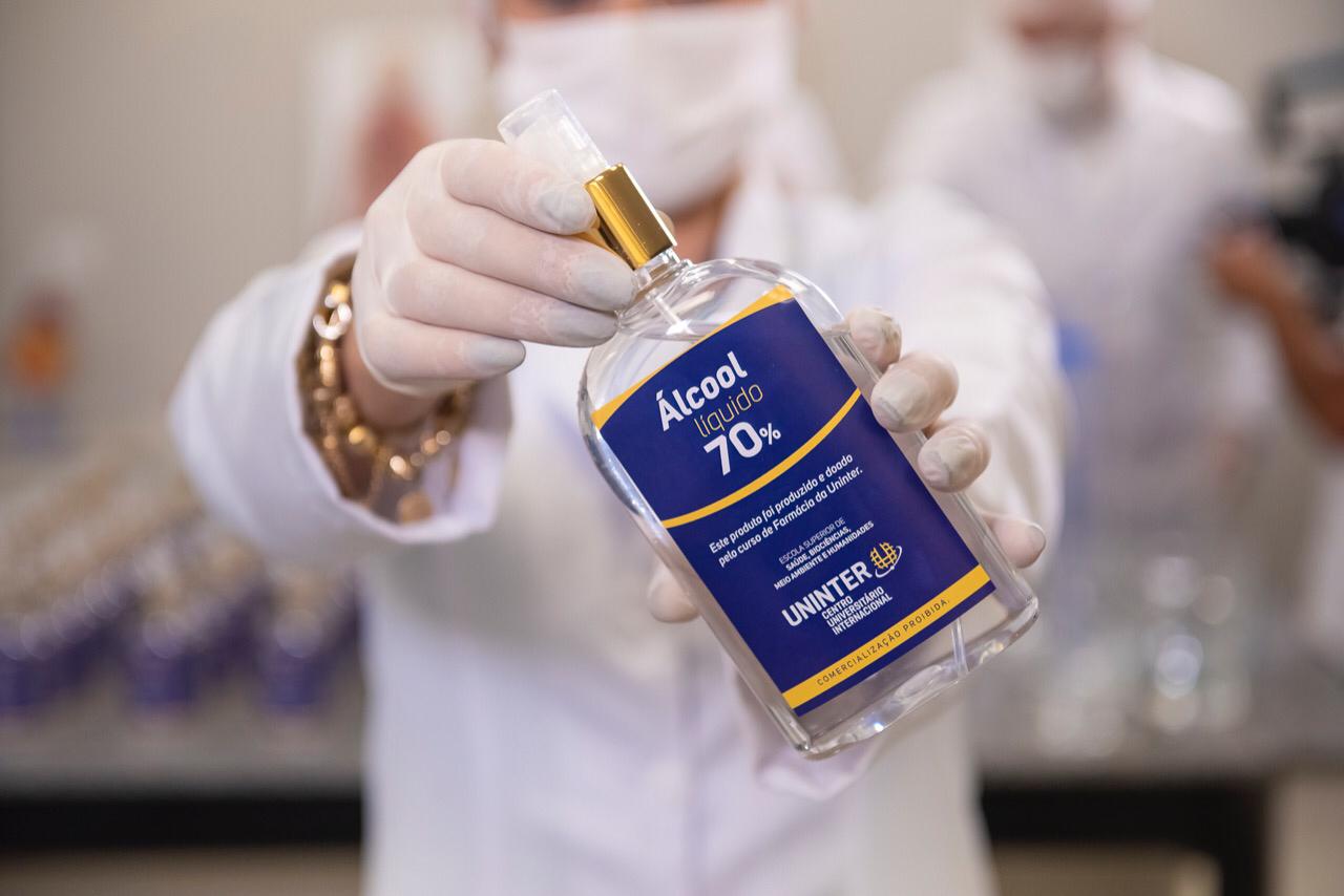 O mundo inteiro está sendo afetado pela epidemia do coronavírus. Neste momento, vários setores da sociedade unem esforços para combater a disseminação do vírus. Pensando na proteção dos profissionais do estado que estão na linha de frente do combate, os professores da Escola de Saúde da Uninter se reuniram para produzir álcool líquido 70%, produto essencial para a esterilização e limpeza de equipamentos, atualmente em falta no mercado.