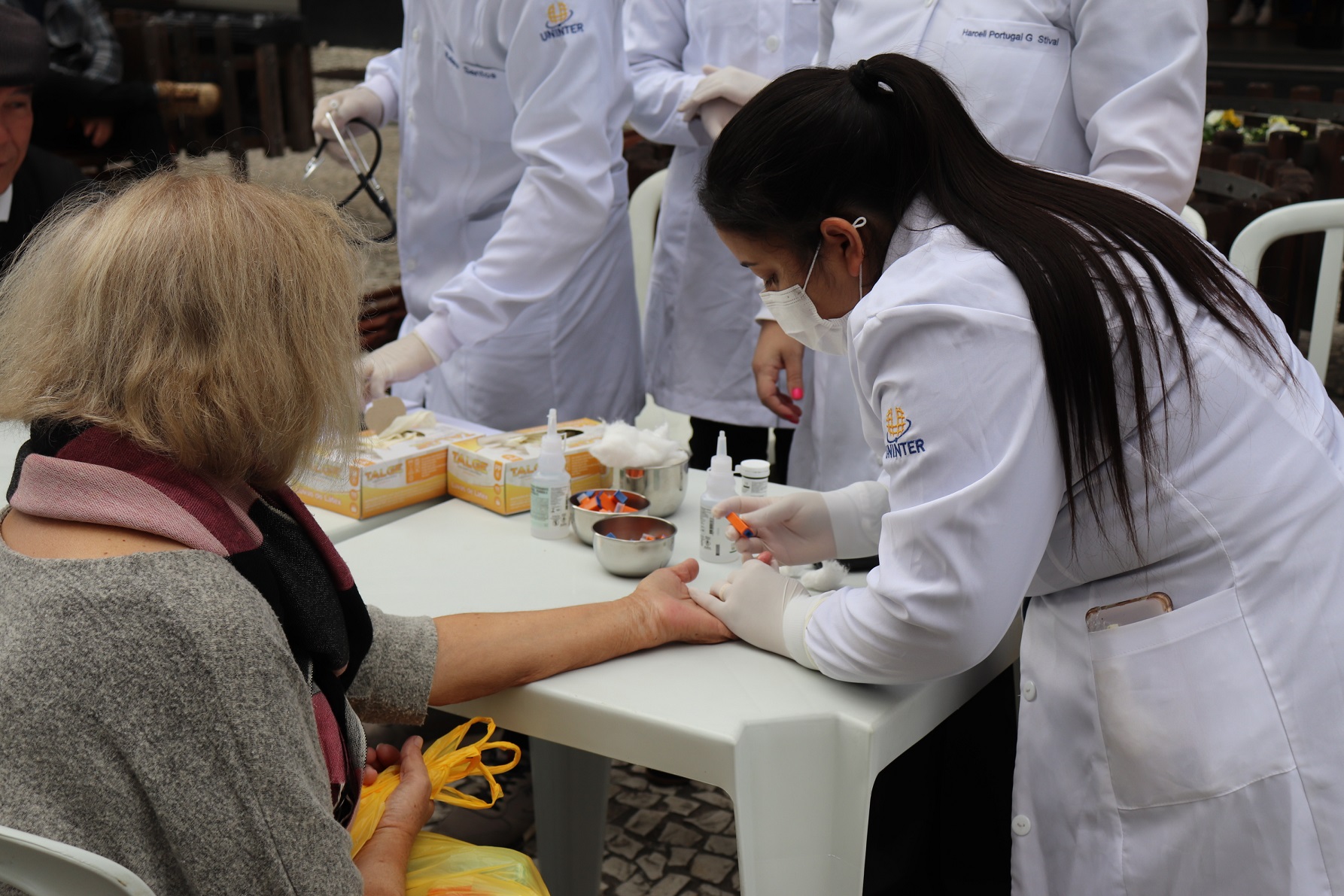 Além dos professores e coordenadores presentes, a ação contou com a participação de aproximadamente 100 alunos que contribuíram em turnos escalonados, atendendo ao público e colocando em prática suas habilidades teóricas. Para o aluno do curso de Biomedicina Kaleu dos Santos, fica o momento de aprendizado. “É totalmente importante a gente ter um primeiro contato com esses exames, conhecer um pouco de como funciona a rotina, ter um pouco de humanismo aqui na hora, porque tem vários tipos de pessoas. Então, é muito importante”, declara.