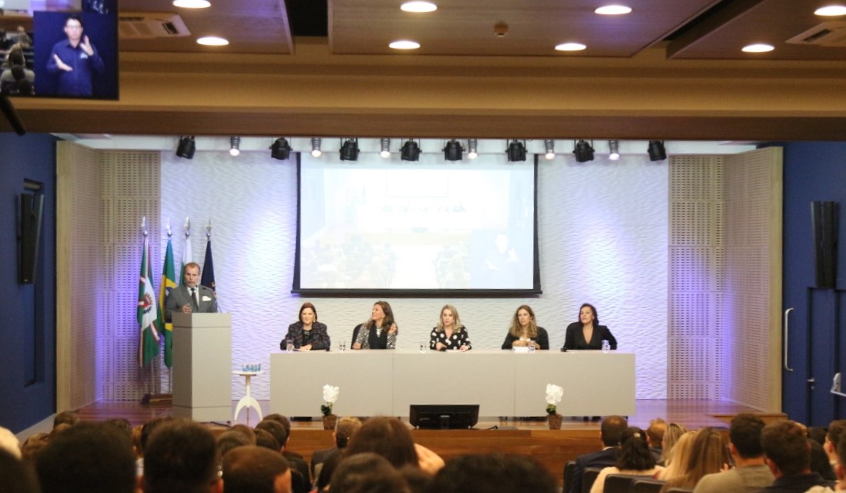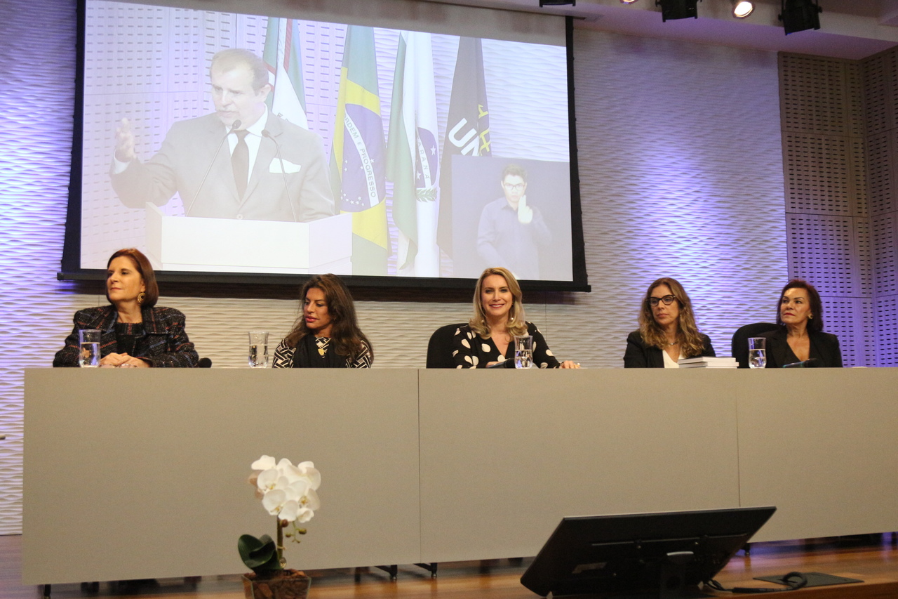 “O intuito é homenagear as mulheres em virtude da data do Dia Internacional da Mulher, que se aproxima, e para mostrar a capacidade da mulher de se desenvolver profissionalmente, sobretudo na área jurídica e em áreas ainda mais específicas”, explica Debora Veneral, diretora da Escola Superior de Gestão Pública, Política, Jurídica e de Segurança. As convidadas da noite foram a Ministra do Supremo Tribunal Militar (STM), Dra. Maria Elizabeth Guimarães Teixeira Rocha, e a Desembargadora do Tribunal de Justiça do Paraná, Joeci Machado Camargo.