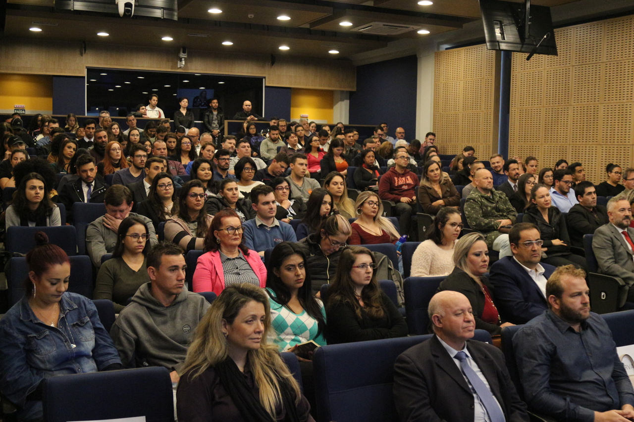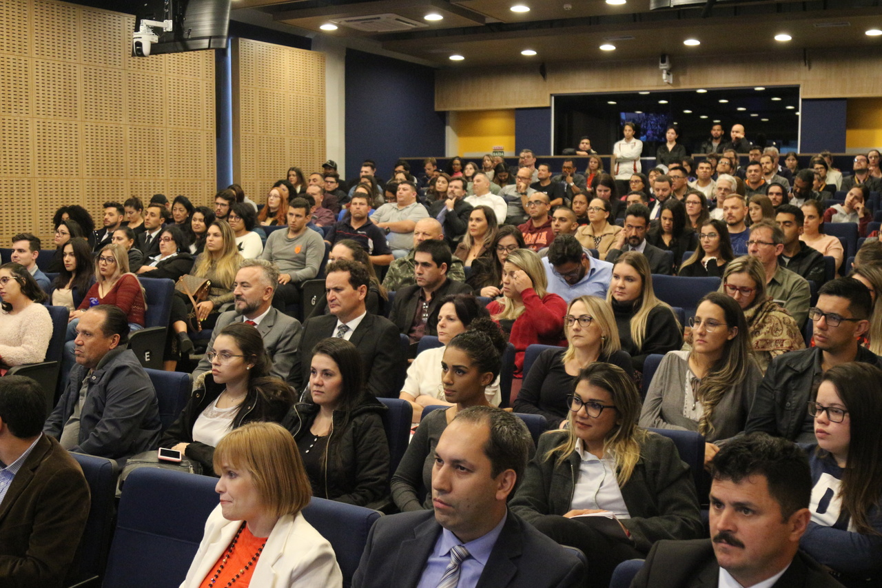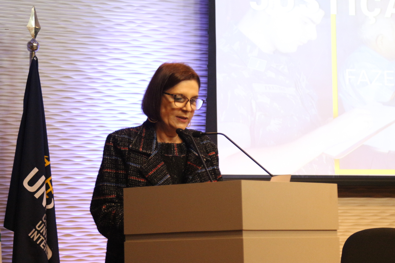 A segunda palestra da noite foi da desembargadora do Tribunal de Justiça do Paraná, Joeci Machado Camargo, conhecida por sua atuação em áreas de vulnerabilidade social. Ela mostrou como o programa Justiça no Bairro pode fazer com que sonhos se tornem realidade. “Sonhei com um dia em que pudéssemos levar a justiça de forma indistinta a todos os lugares. Devemos sonhar infinito para realizar na vida prática”. O Justiça no Bairro começou em 2003 e teve como marco inicial fazer processos de conciliação em 30 dias, o que na época não era algo corriqueiro. O programa é dividido em quatro segmentos: Núcleo de Conciliação das Varas de Família, Polos de Conciliação Avançados, Centro de Atendimento e Conciliação e Justiça Itinerante (Eventos). Nos encontros de Ação Social de que o programa participa, com a mobilização de equipes médicas e estudantes de Direito, é possível ter acesso a serviços como emissão de documentos e laudos médicos, assessoria jurídica, conciliação de pequenas causas e até casamentos comunitários. Tudo de forma desburocratizada. Em 2019, foram 1.457.119 atendimentos, mais de 80 mil audiências realizadas e 10.015 perícias, em 183 municípios do Paraná. Isso representa mais de R$ 4,5 milhões de economia gerada ao Tribunal de Justiça. Joeci fez questão de enfatizar a participação dos alunos de Direito da Uninter no atendimento à população, por meio dos escritórios modelo. “A equipe são vocês. Graças ao auxílio dos estudantes conseguimos levar dignidade às famílias. O maior vírus da humanidade se chama omissão”, comenta.