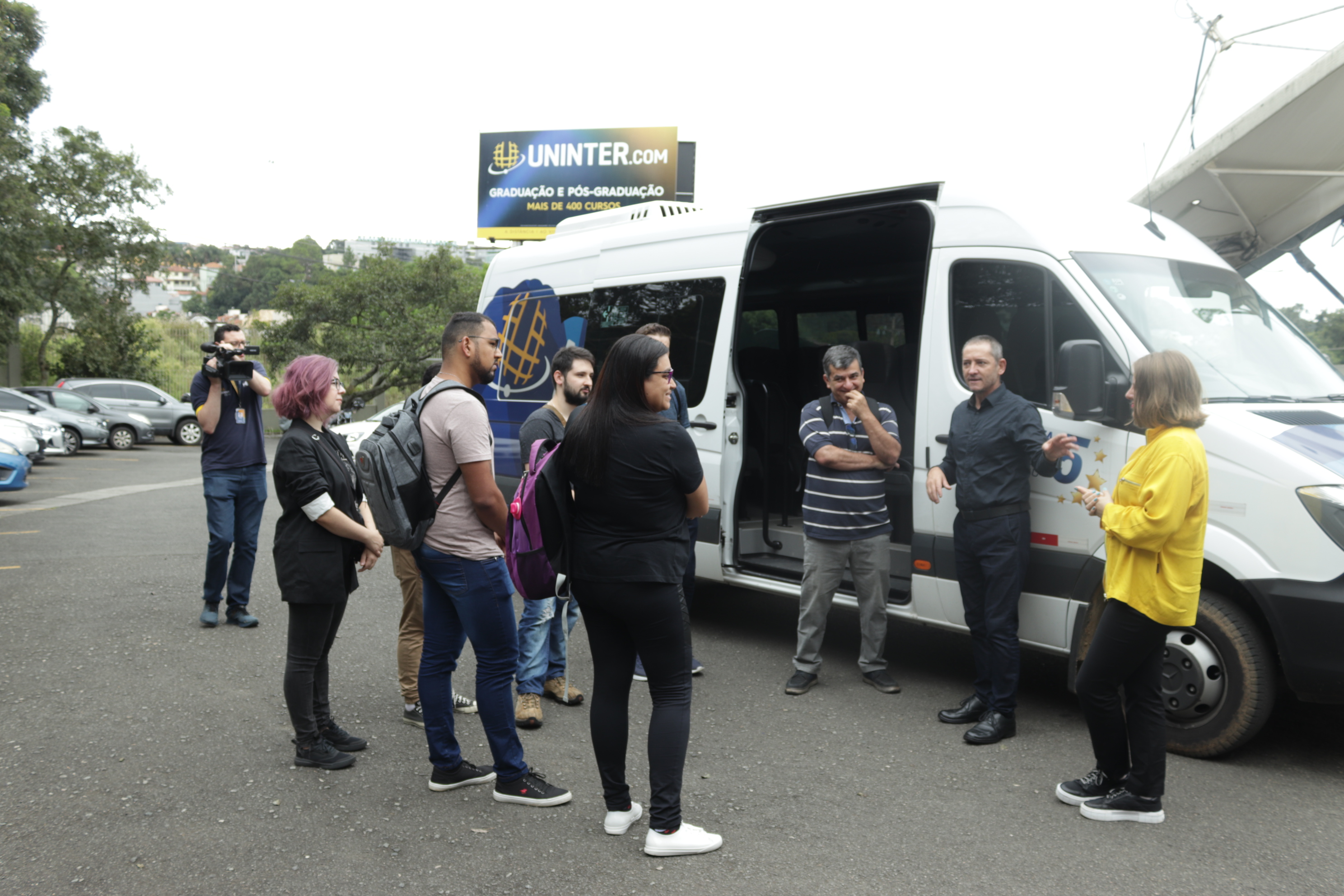 Na manhã de sexta-feira, os estudantes se encontraram no campus Garcez da Uninter, região central da capital, e foram recepcionados pelo coordenador do curso de Jornalismo, Guilherme Carvalho. Lá, tiveram a oportunidade de conhecer toda a infraestrutura do edifício e alocações das escolas superiores, assim como o auditório e estúdios do prédio.