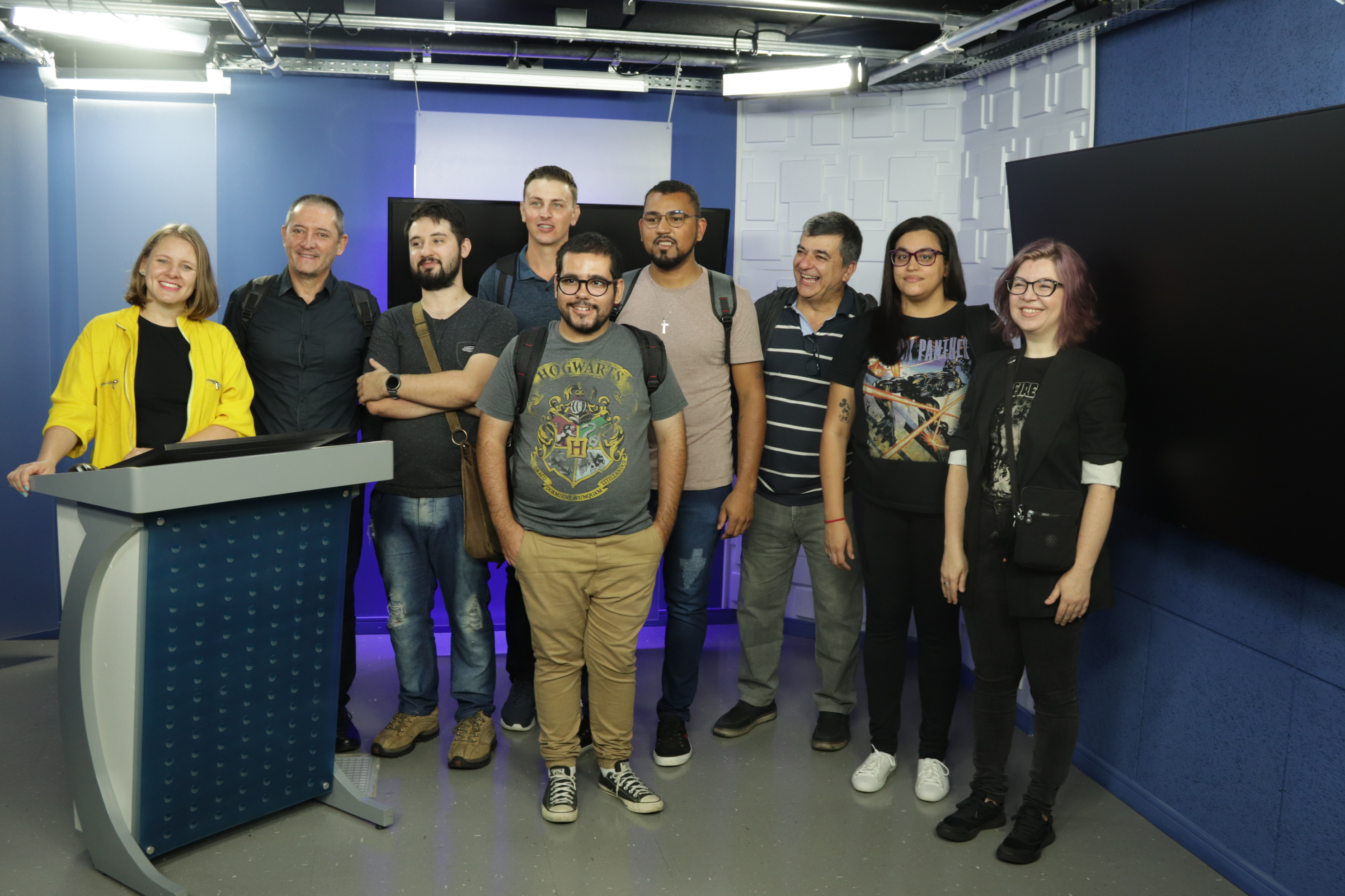 O grupo ainda teve a chance de conhecer os Estúdios Uninter, localizados na sede Araucárias, onde são gravadas as aulas que os alunos da educação a distância (EAD) assistem de casa.