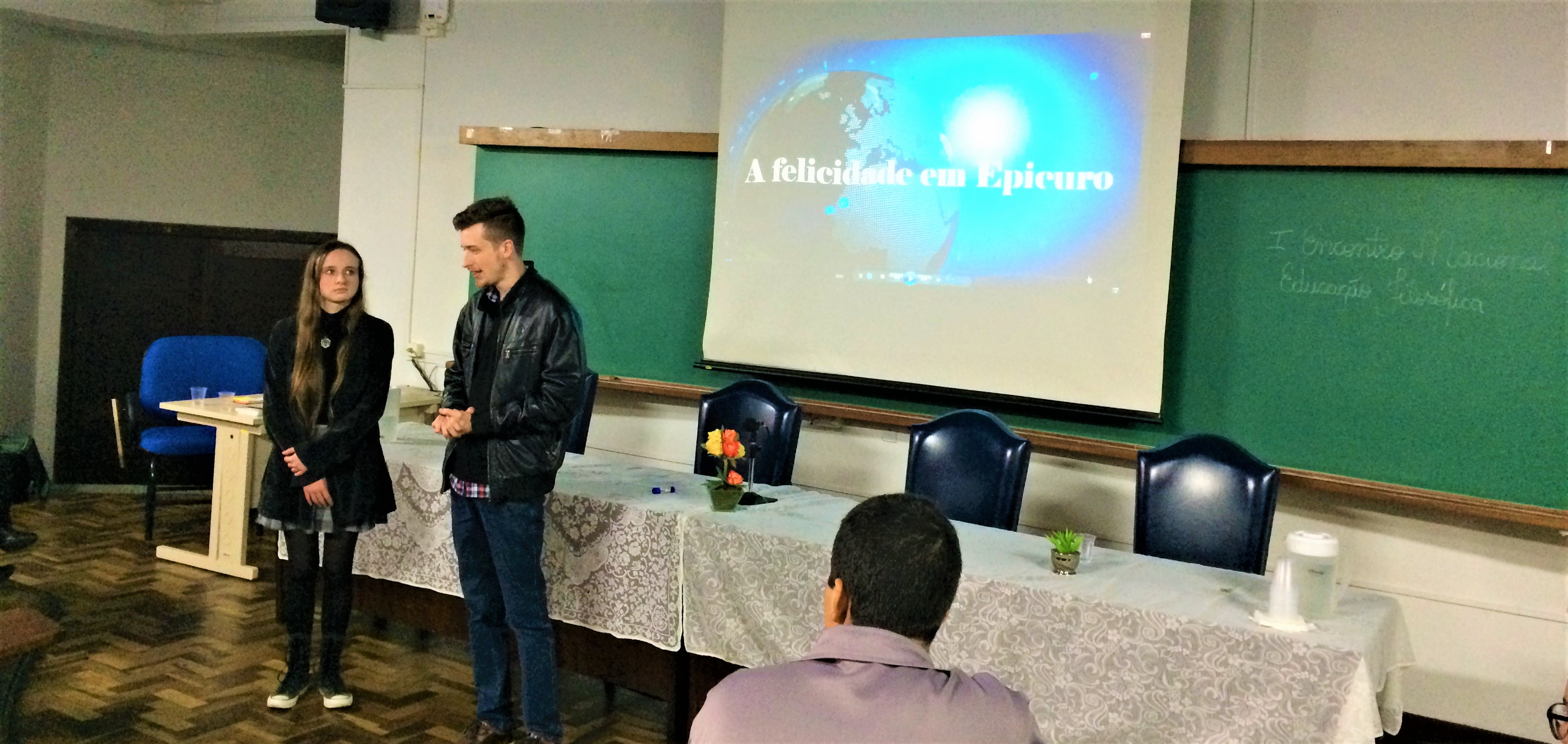 Durante o trabalho, Cosme percebeu que grande parte dos estudantes demonstraram interesse pela questão da felicidade e encontraram uma resposta importante no pensamento do filósofo grego Epicuro de Samos (341- 270 a.C.). Na apresentação, Magali ressaltou que a ideia da Teoria de Epicuro destaca a importância da busca do prazer, mas afirma que não é o prazer almejado por nossa sociedade contemporânea, pois esse é causa de dor e sofrimento.
