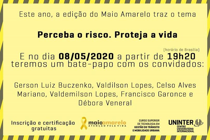 Evento online discute a preservação da vida no trânsito no Maio Amarelo