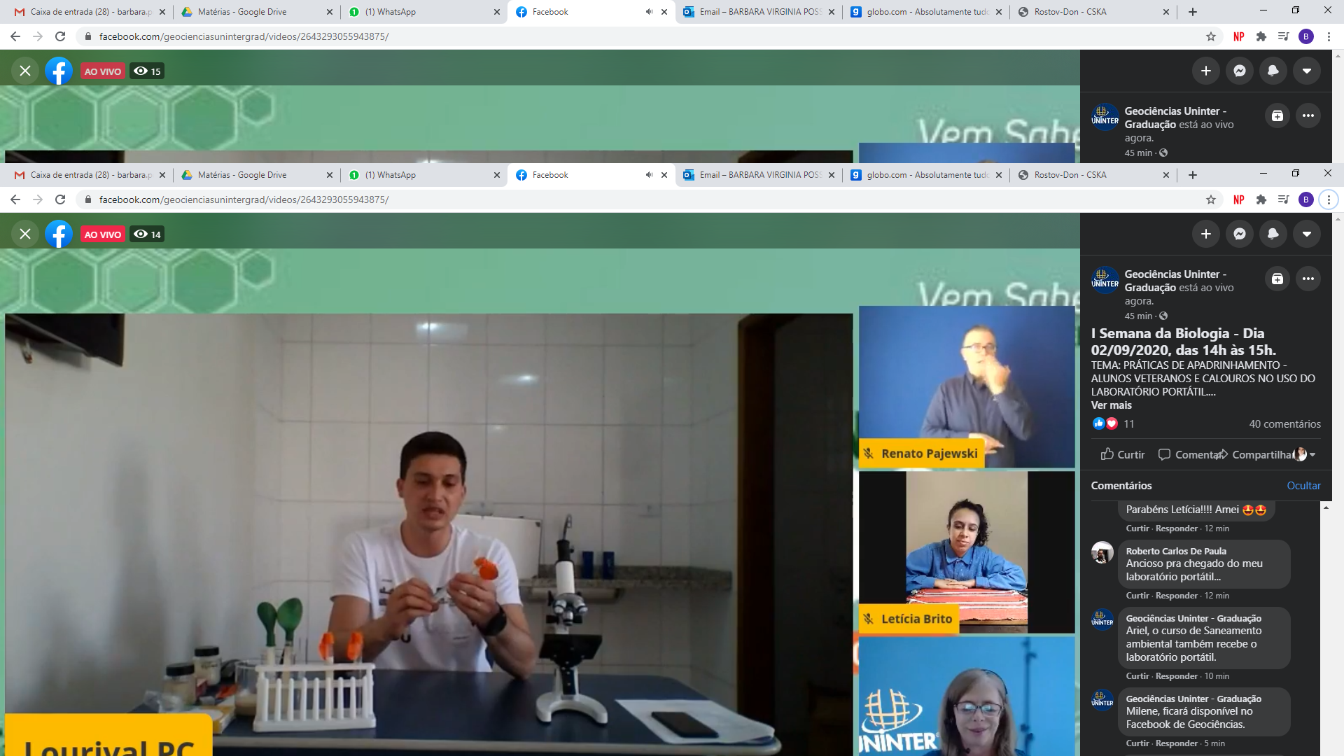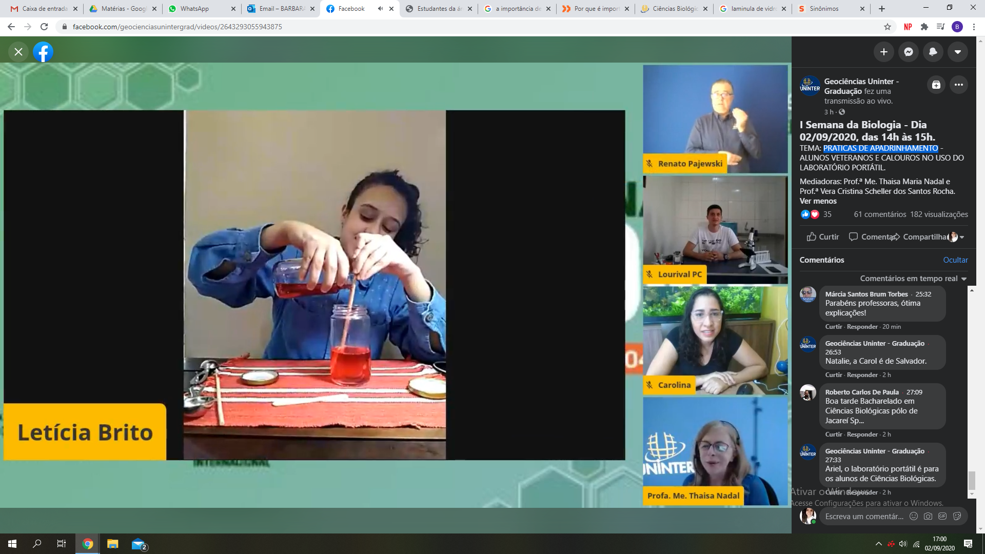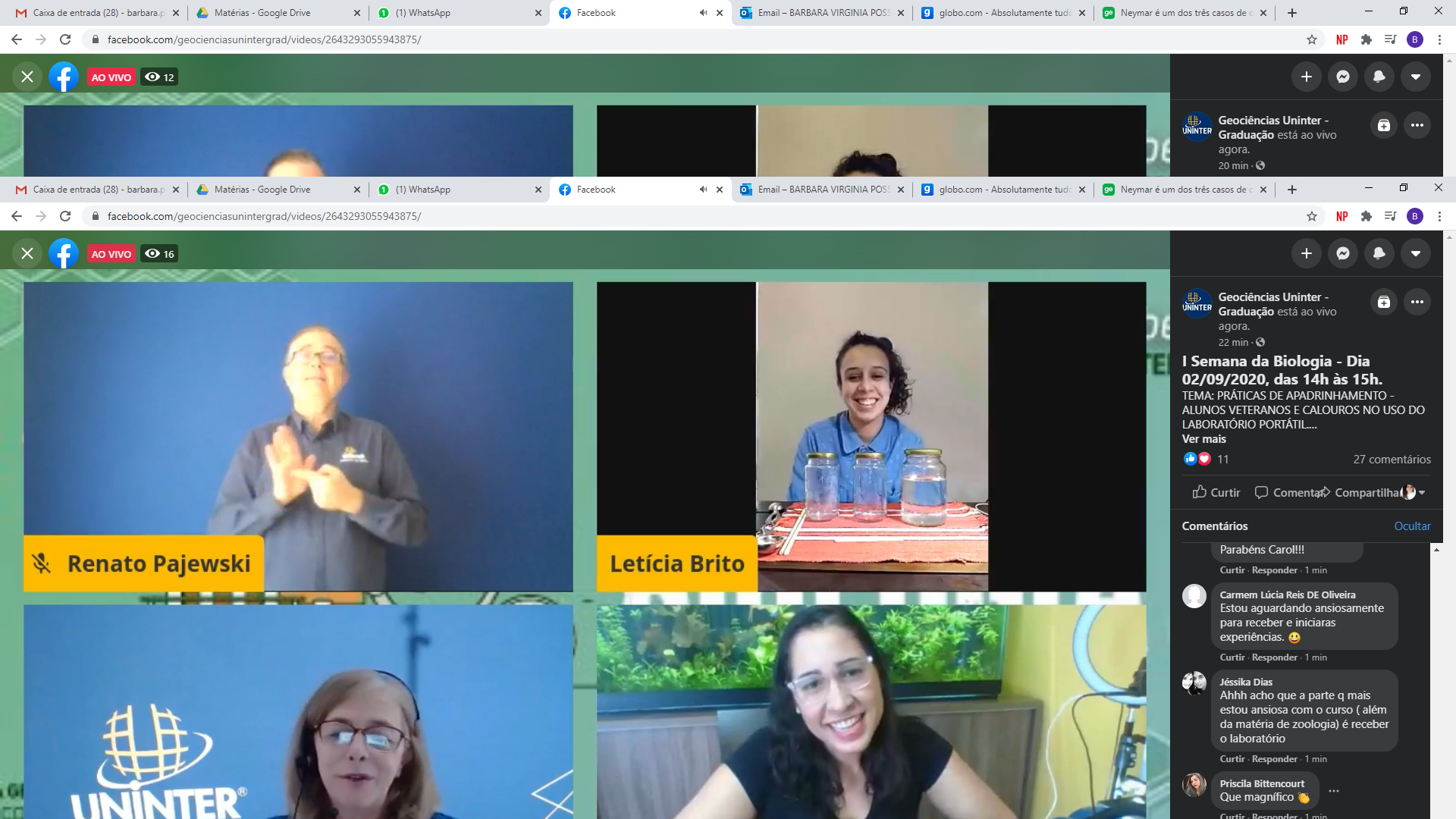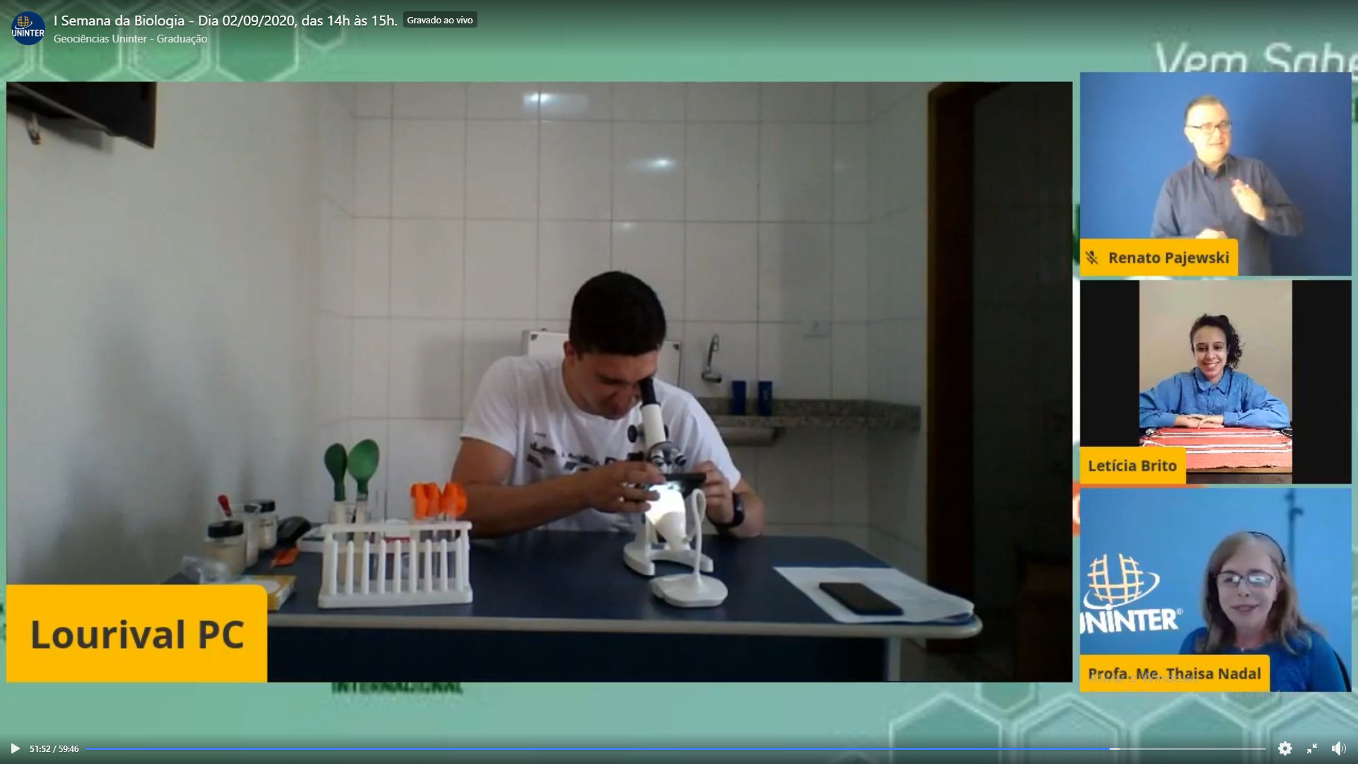 Durante a I Semana da Biologia, realizada totalmente online na página de Geociências da Uninter no Facebook, as professoras Thaisa Maria Nadal e Vera Cristina Scheller dos Santos Rocha receberam 3 alunos do curso de Ciências Biológicas para a live Práticas De Apadrinhamento.