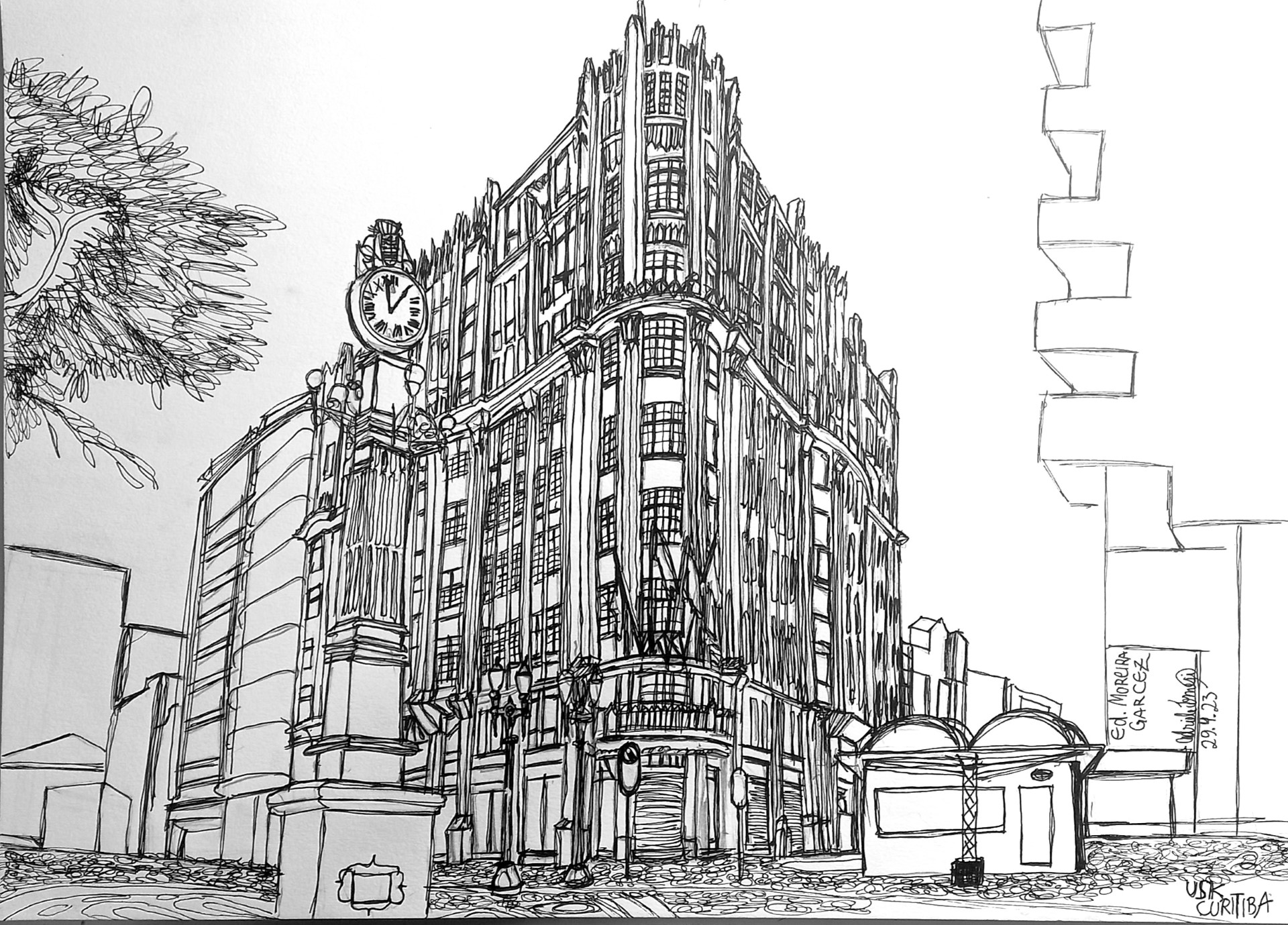 O Edifício João Moreira Garcez é um dos prédios mais icônicos da cidade de Curitiba. A construção abriga o principal campus da Uninter e neste ano ele foi um dos escolhidos para ser eternizado pelas mãos dos desenhistas que fazem parte do Urban Sketchers, movimento global incorporado por desenhistas dedicados a dispor seu tempo a ilustrar e colocar em prática o desenho local.