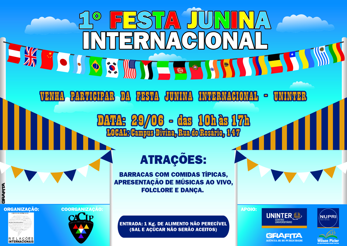 Junho é o mês de festa! Por isso, os alunos do curso de Relações Internacionais UNINTER estão promovendo a 1ª Festa Junina Internacional.