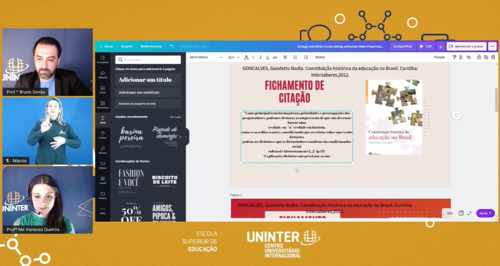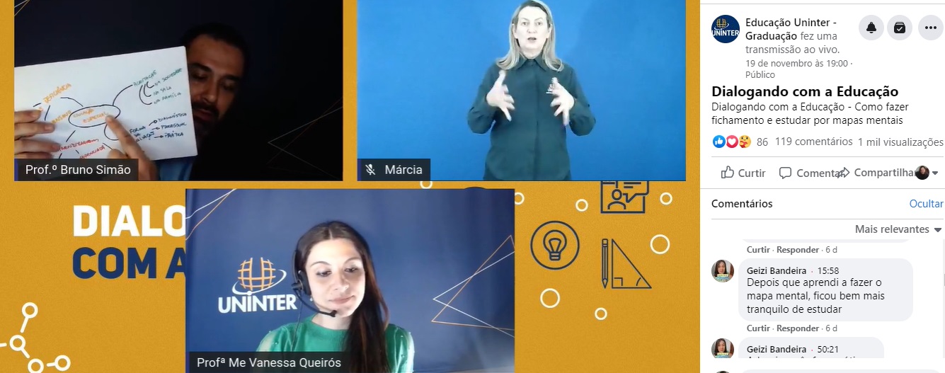 Durante o programa Dialogando com a Educação do dia 19.nov.2020, os professores da Escola Superior de Educação da Uninter Bruno Simão e Vanessa Queirós debateram sobre o tema Como fazer fichamentos e estudar por mapas mentais. A transmissão ao vivo aconteceu através da página de Educação.
