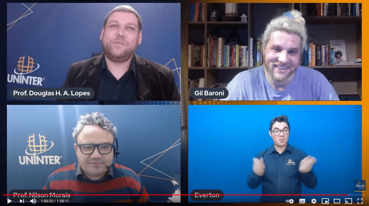 A transmissão ao vivo da sessão debate sobre o CineClube: Luz, Filosofia e Ação ocorreu no canal do YouTube da ESE e pela página do Facebook da Área de Humanidades (clique aqui). Além do diretor Gil Baroni e de Douglas Lopes, o debate contou com a presença da diretora da ESE, Dinamara Machado, do coordenador da área de Humanidades, Cícero Bezerra, e do professor Nilson Morais.