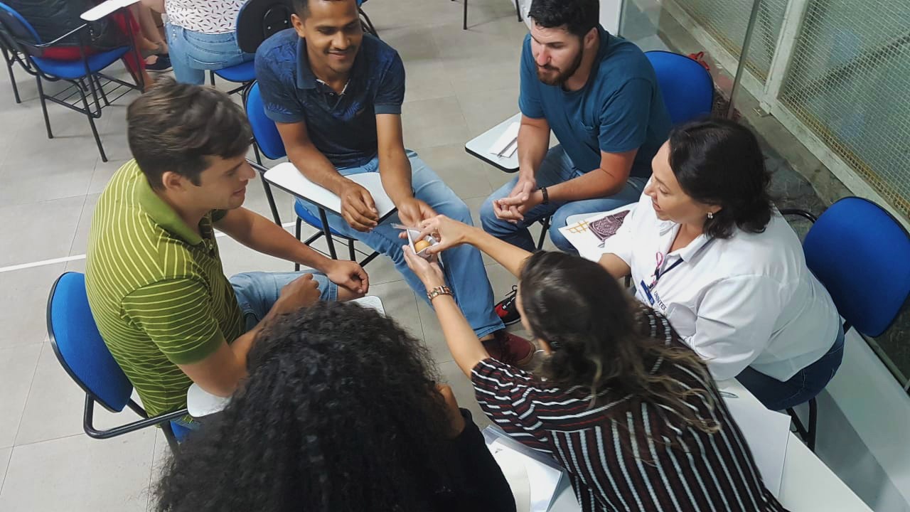 Ao final, todos participaram de uma dinâmica chamada “arremesso de ovos”, que desenvolve a liderança, a comunicação e o trabalho em equipe. Foi uma forma de o grupo interagir e praticar os conceitos trabalhados durante a palestra, elaborando um projeto para arremessar ovos sem que eles quebrem.