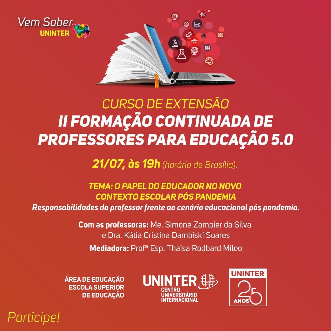 A Escola Superior de Educação (ESE) da Uninter busca responder essa e outras questões na II Formação continuada de professores para educação 5.0, realizada em parceria com a Secretaria Municipal de Educação da Lapa (PR) e com os seus polos de apoio presencial (PAP) espalhados por todo o Brasil.