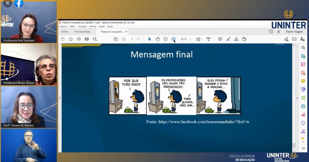 Maria Tereza e Daiane ainda passaram por tópicos sobre o currículo escolar baseado nas competências e de que forma trabalhar com estudantes com necessidades especiais neste período de pandemia. O bate-papo segue disponível para livre acesso.
