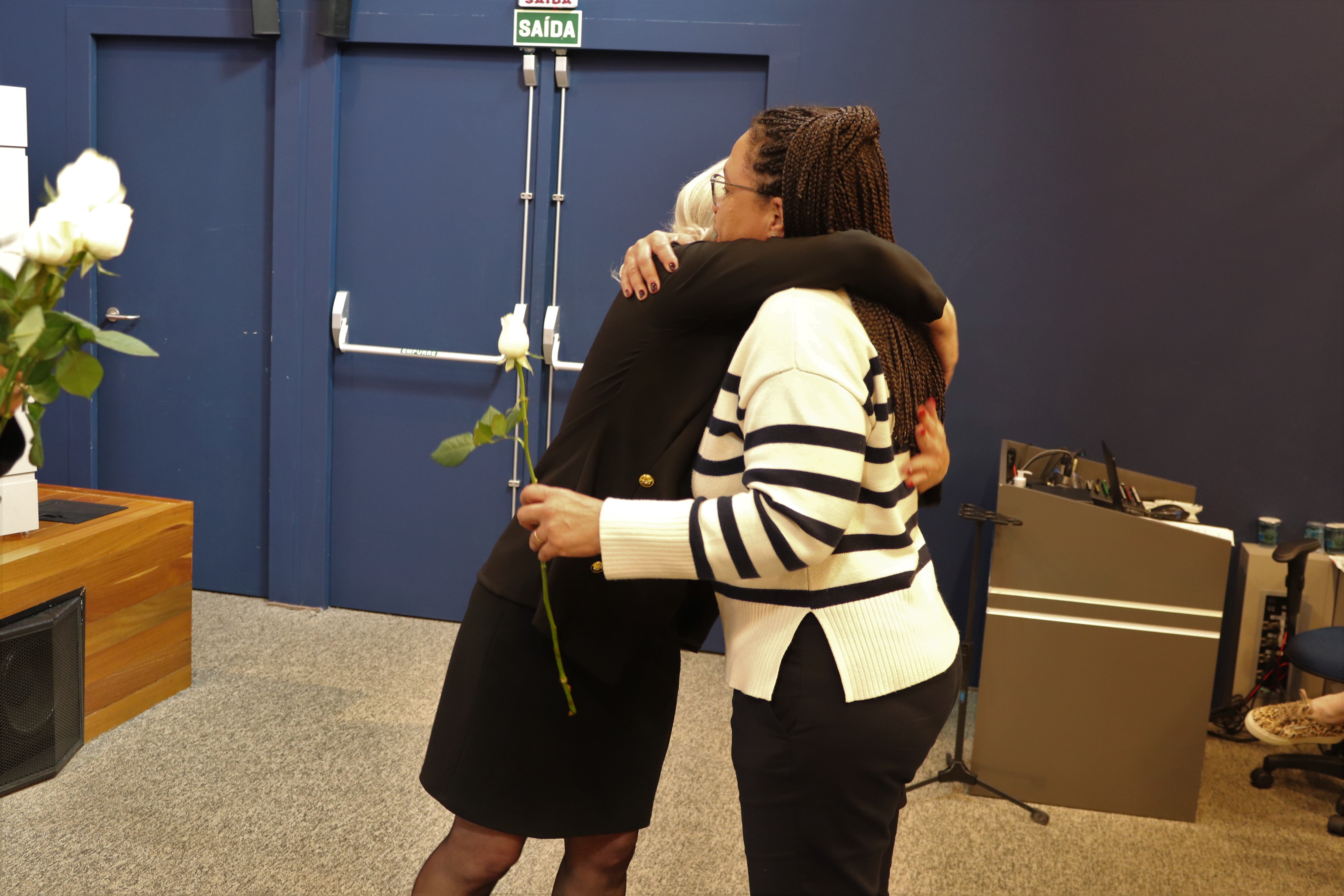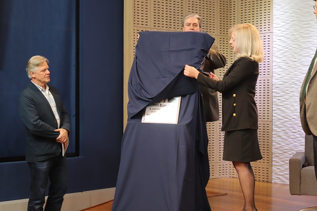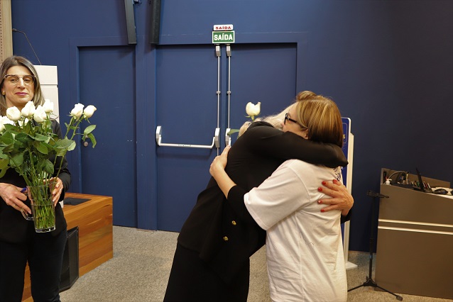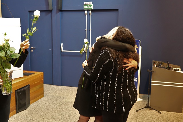Thaisa e Picler realizaram o descerramento da placa em homenagem a Germano e rosas brancas foram distribuídas para professores e familiares dos profissionais presentes.