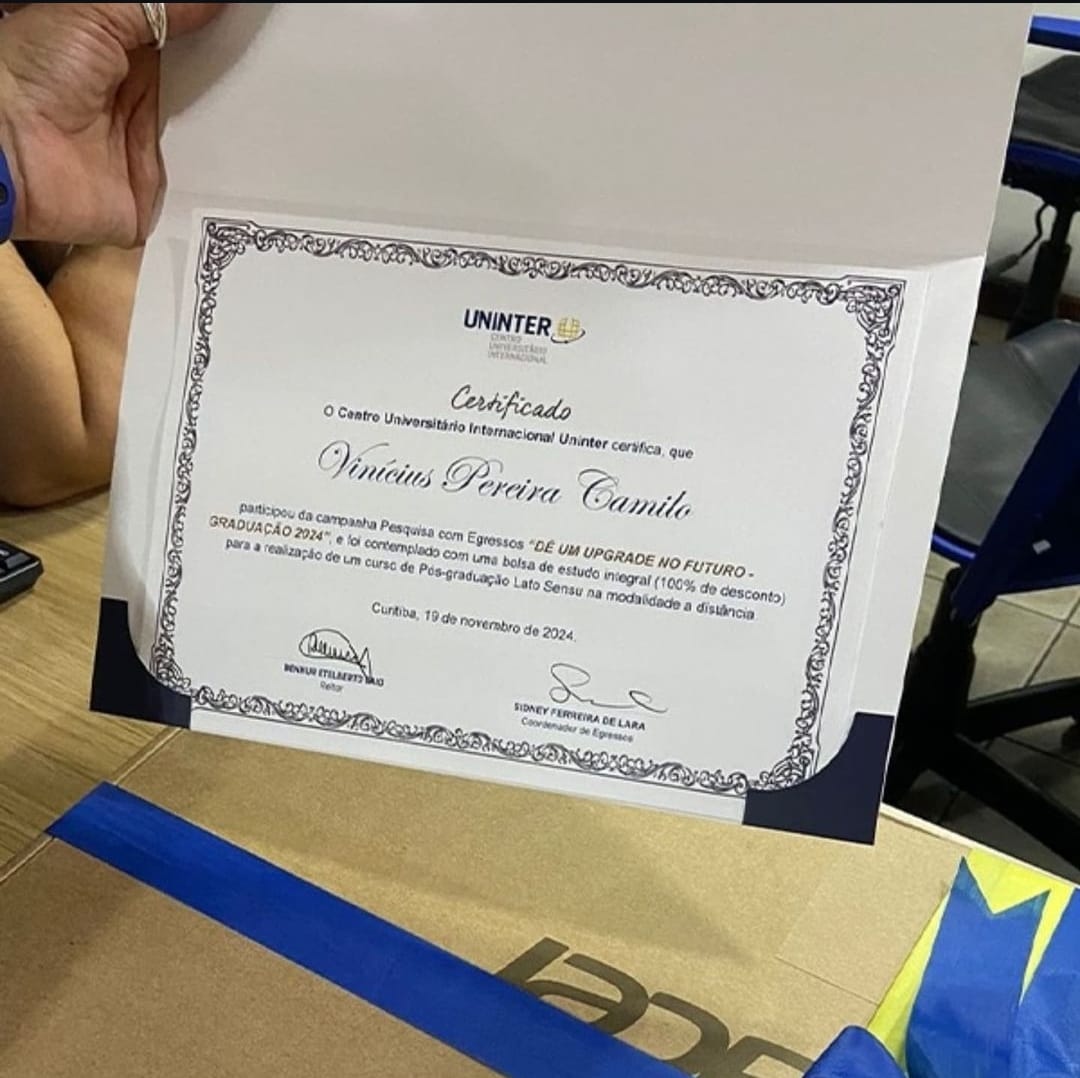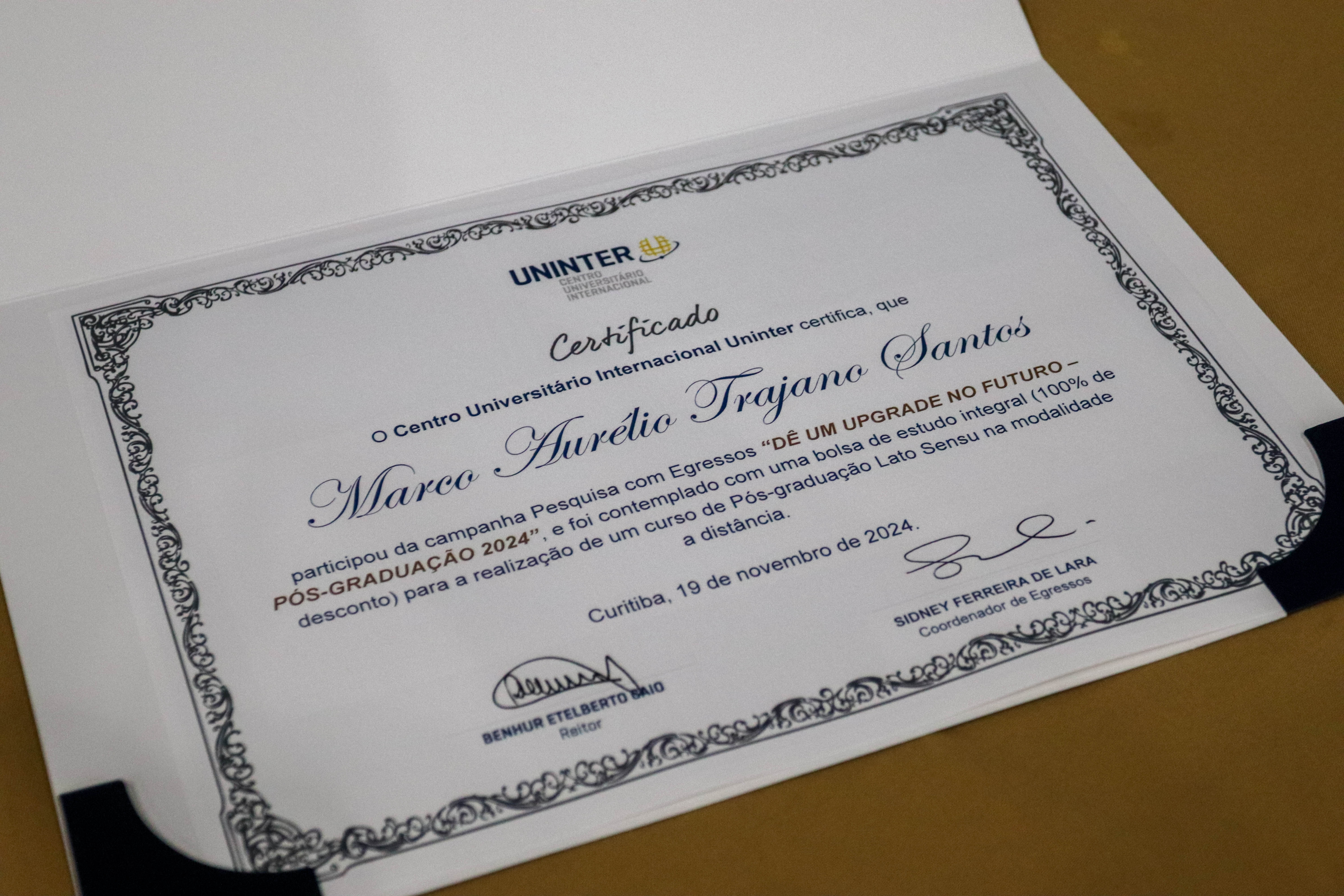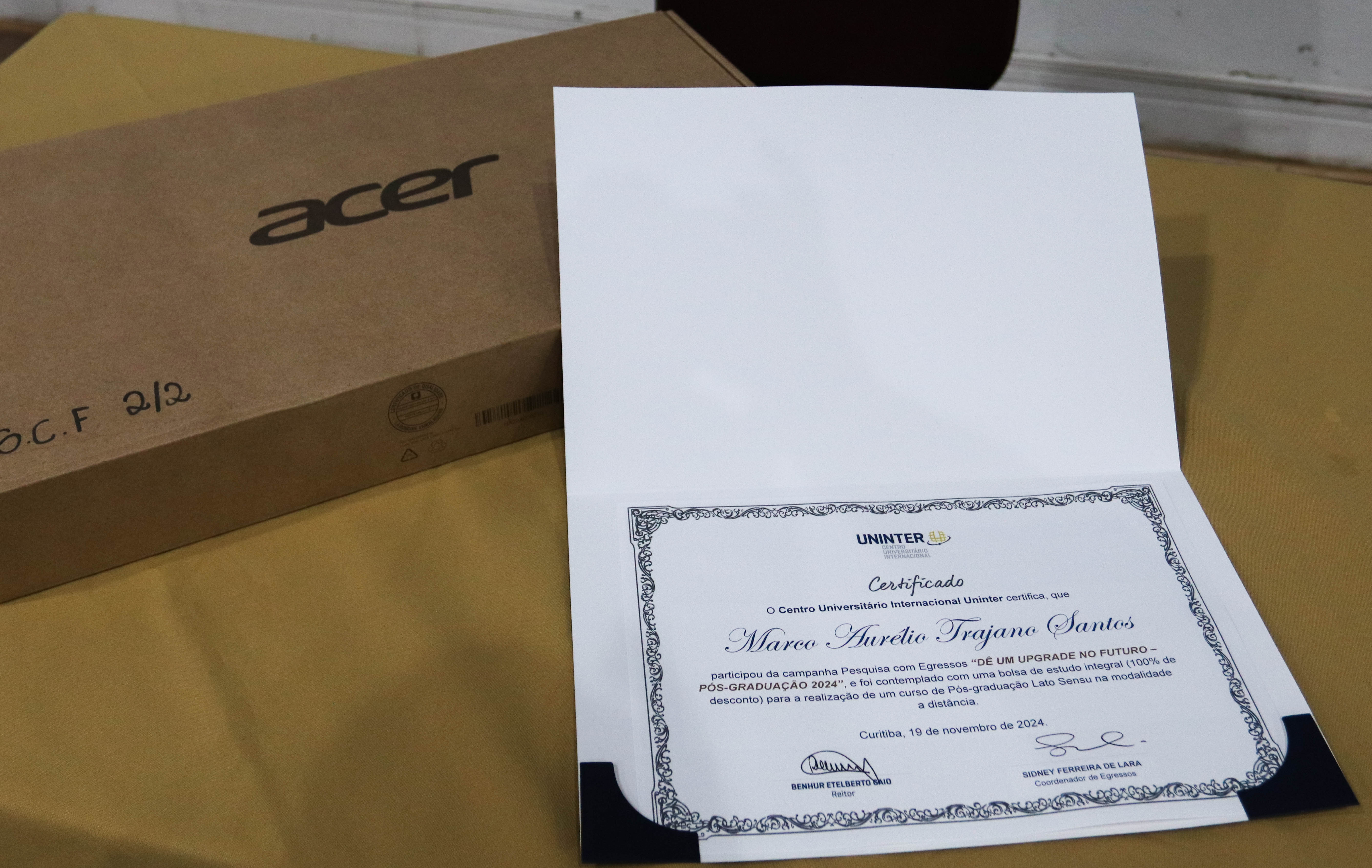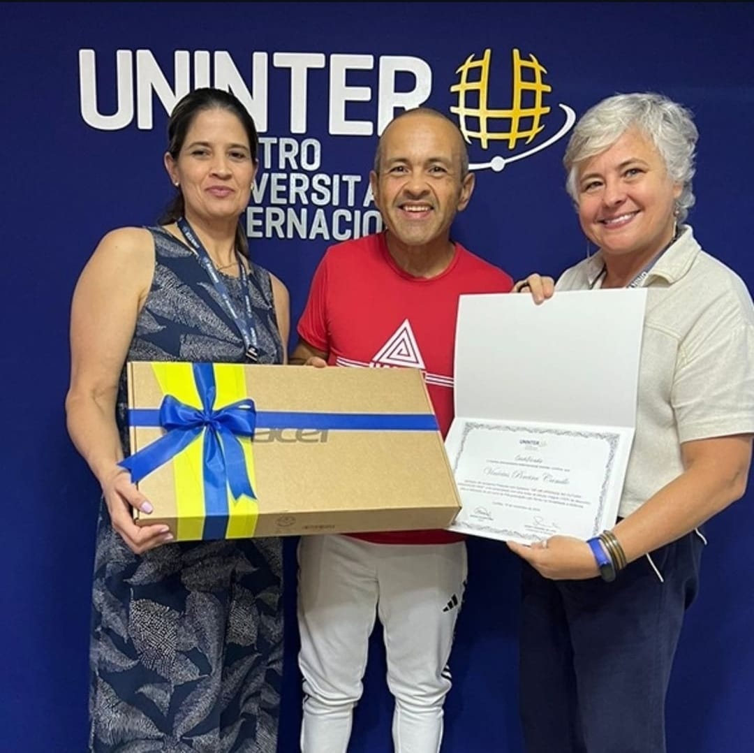A entrega do prêmio para os egressos aconteceu no dia 26 de novembro de 2024, nos polos da Uninter em Curitiba (PR) e Juiz de Fora (MG), aos quais Marco Aurélio e Vinicius são vinculados, respectivamente.