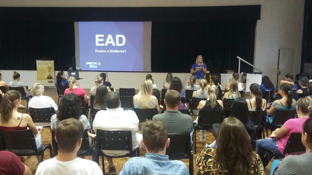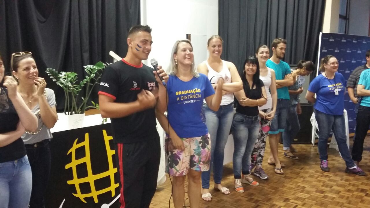 Jaqueline apresentou aos calouros a equipe do polo: a coordenadora Isabel Ludtke, os tutores Fernanda Milani Mor, Karine Chrischum, Senírio Naujorks e Silvane Correia, as secretárias Malu Paveglio e Ana Caroline Reus. Depois, os novos alunos assistiram a uma apresentação do vídeo institucional da instituição e sobre o funcionamento da educação a distância. Receberam ainda brindes e orientações sobre a plataforma virtual usada pela Uninter no processo pedagógico.