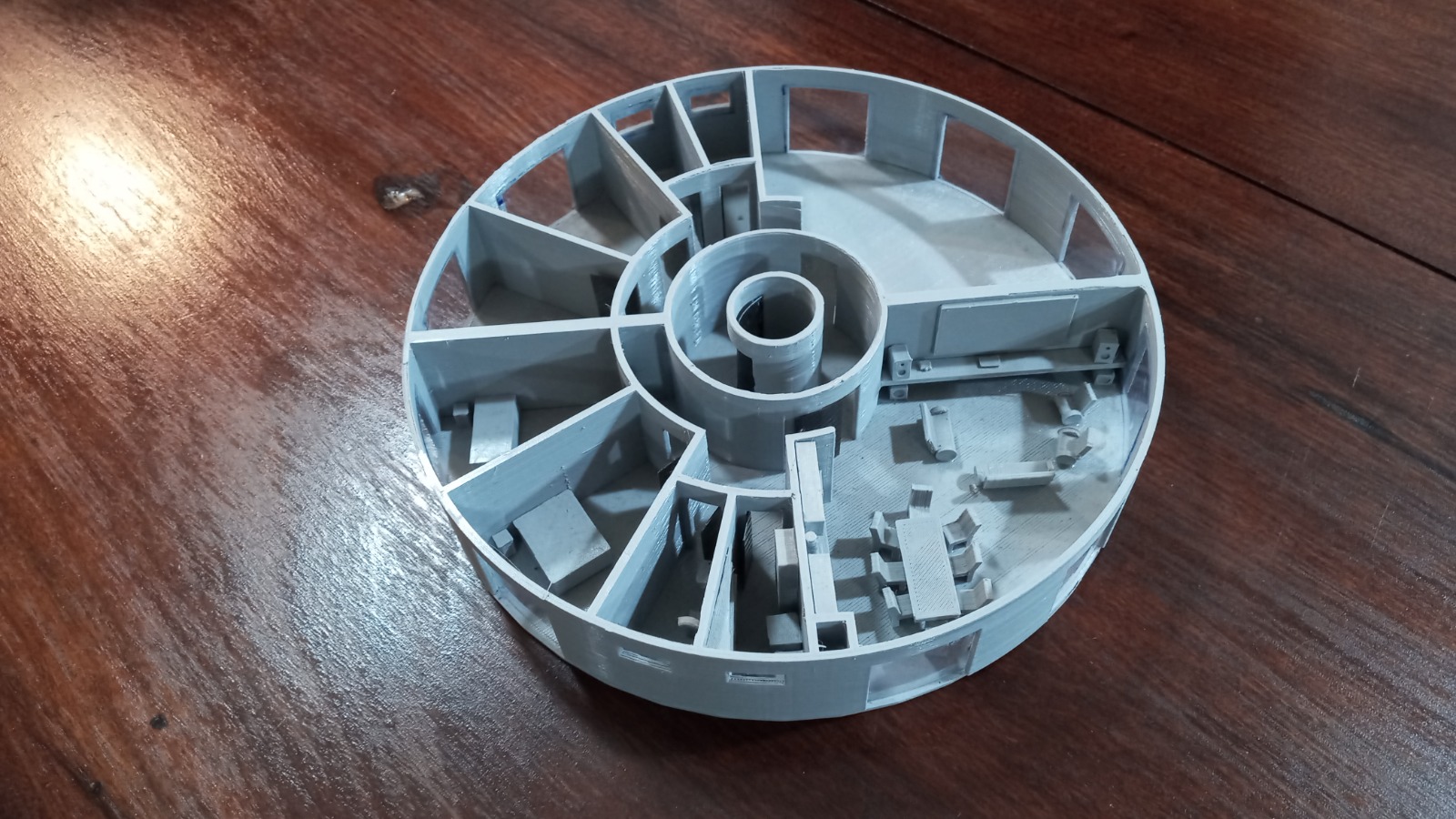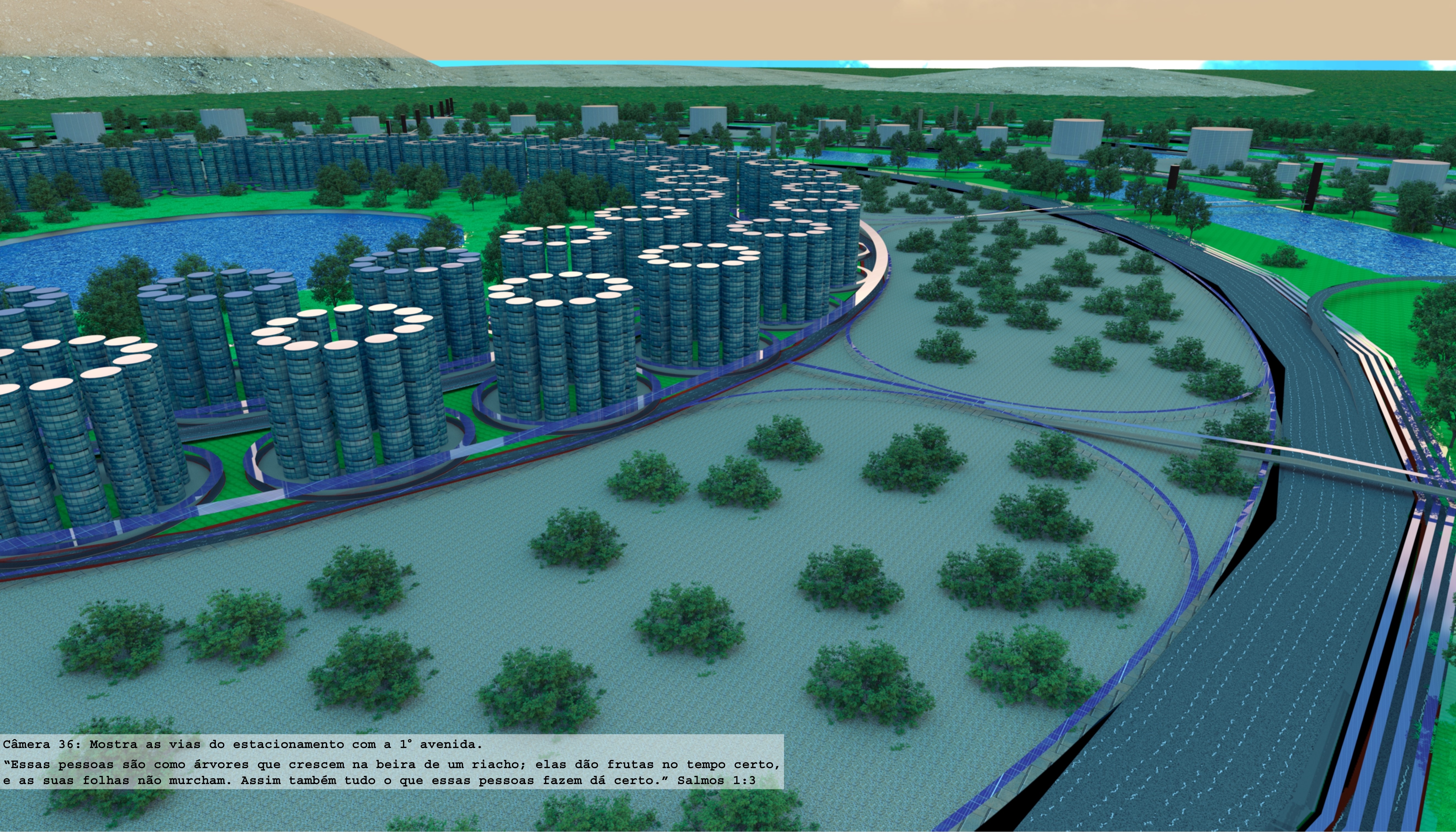 Para refletir sobre isso, pai e filho desenvolveram um modelo diferente de organização urbana que prioriza a mobilidade e a efetividade do desenvolvimento urbano. Pensado em formato circular e composto por edifícios circulares, o modelo desenvolvido de maneira digital por meio de softwares de criação exemplifica a ideia de ambos para a criação de novos conceitos de urbanização.