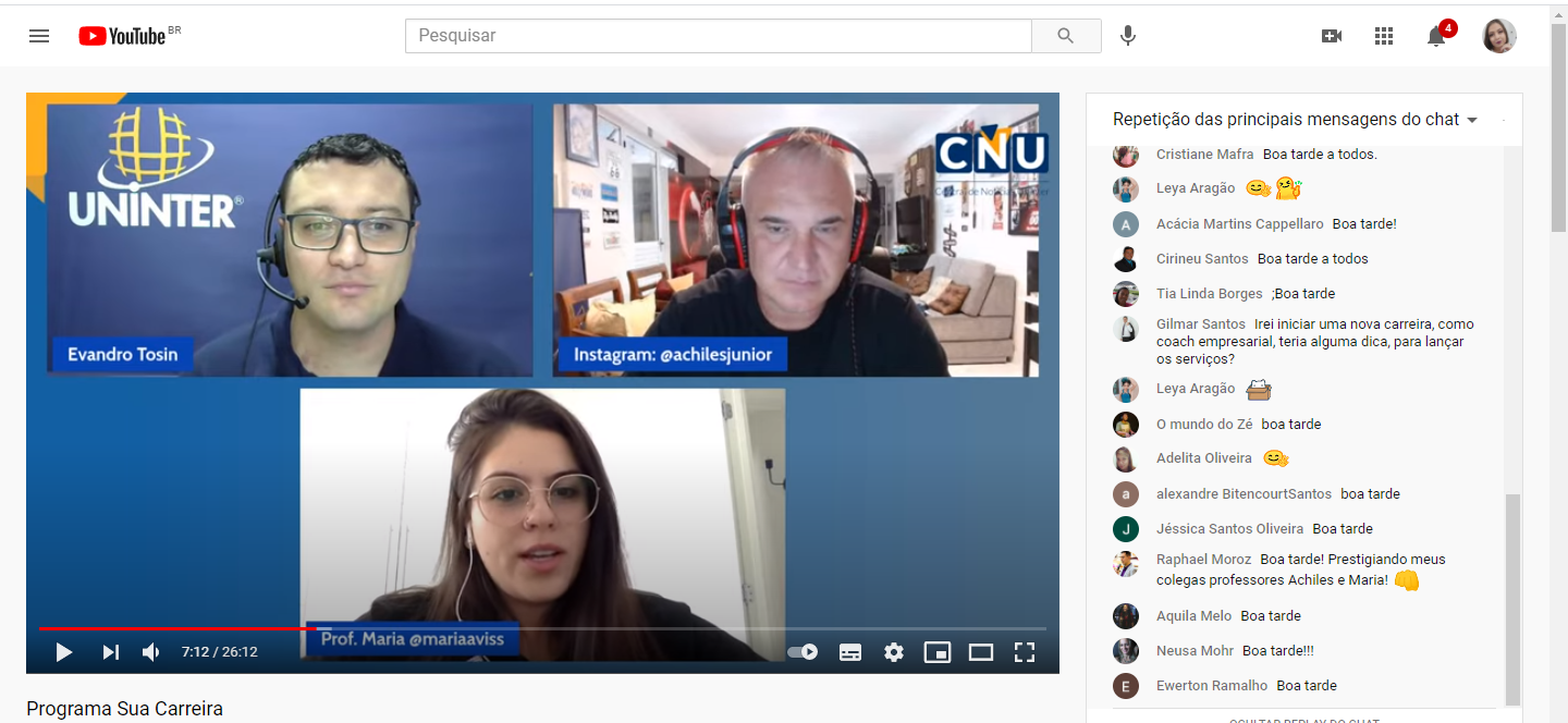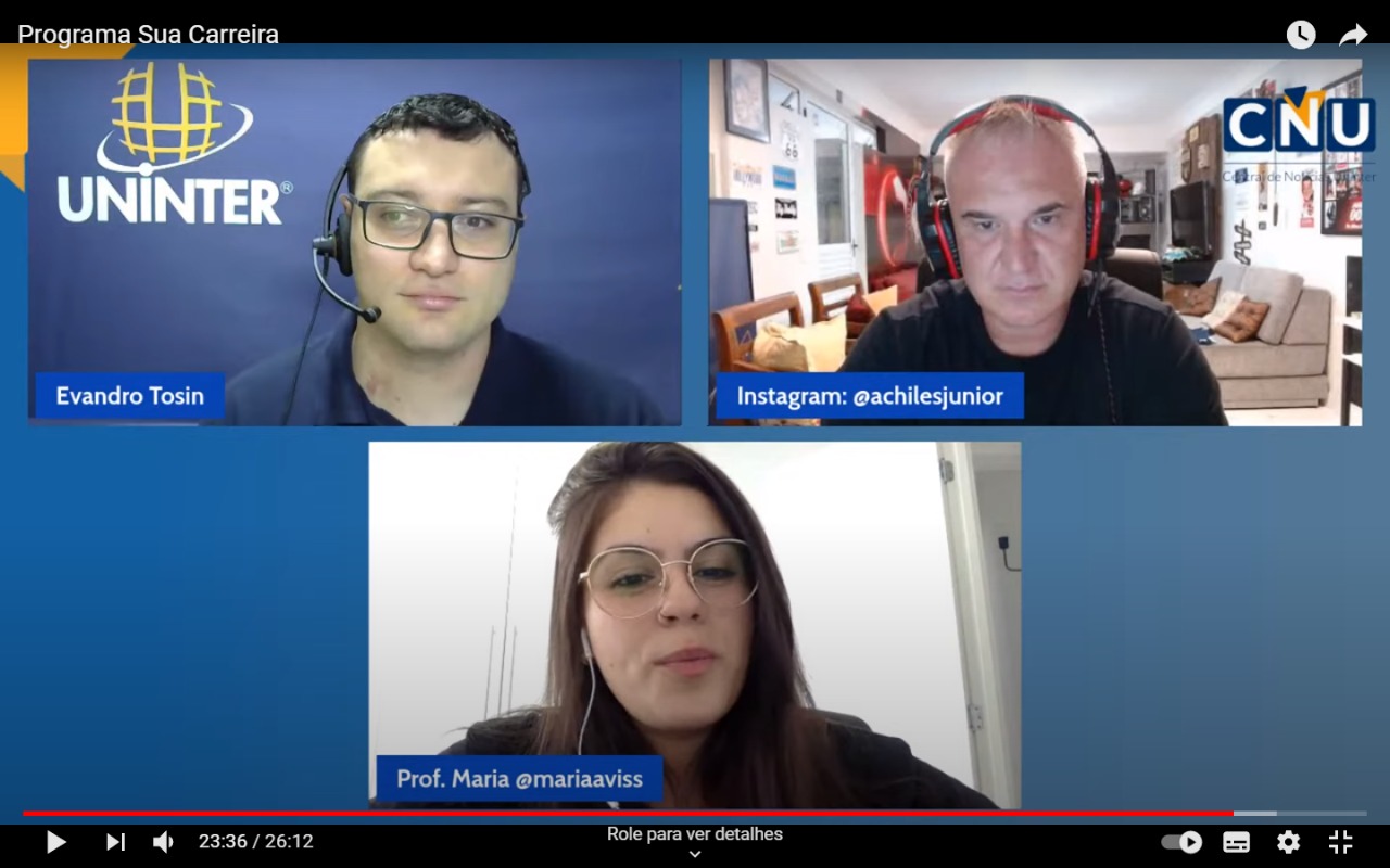 Achiles complementa a fala da professora relembrando que na Uninter os alunos podem tirar suas dúvidas com os tutores, que estão sempre à disposição. Há também o acesso à biblioteca virtual, com milhares de livros acadêmicos gratuitos, além de o curso contar com aulas de docentes com ampla experiência na área.
