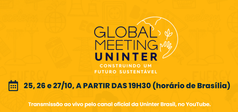 A Uninter iniciou na noite de segunda-feira (25/10) mais uma edição do Global Meeting, com o tema “Construindo um Futuro Sustentável”. Ao longo de três noites, de 25 a 27 de outubro, o evento promove seis mesas de debate. Transmitido pelo canal da instituição no Youtube, o evento reúne grande especialistas que falam a toda a comunidade de estudantes.