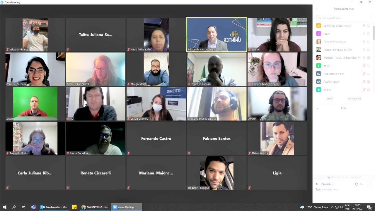 Dia 19 de novembro foi a vez dos alunos da Uninter viverem uma experiência parecida. A professora Rana Lehr Lehnardt, da UMKC, lecionou sobre Direito estadunidense. Com tradução simultânea e grande participação, a aula apresentou uma introdução ao sistema legal dos EUA.