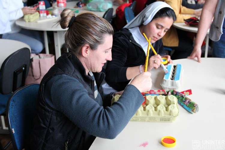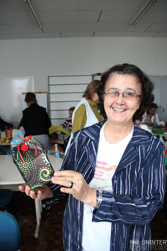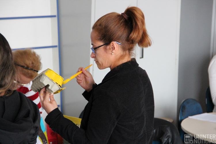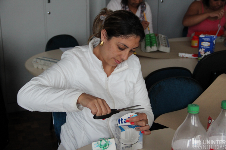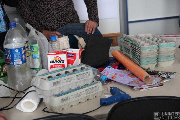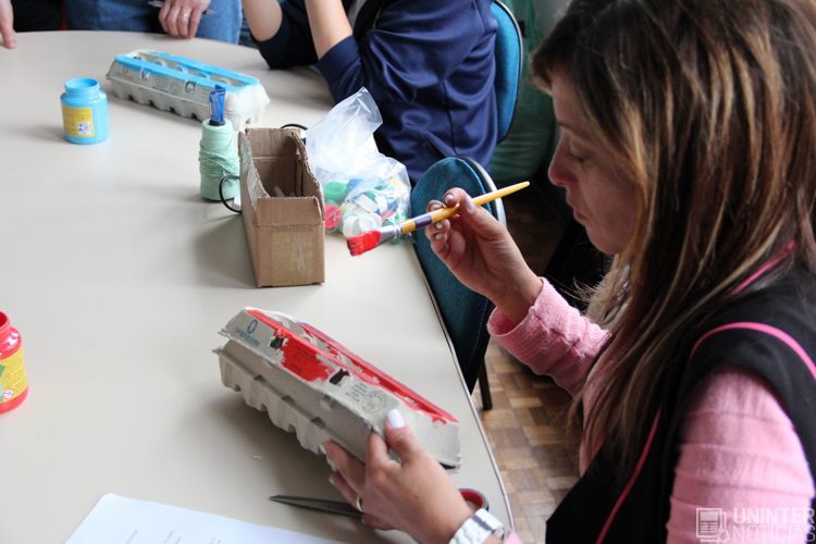 A aluna Elisângela Maria da Costa Slezinski, do 1º período do curso de Pedagogia EAD participou das atividades e ressalta a importância de trabalhar com a reciclagem. “Na minha opinião é muito importante porque aprendemos muitas coisas e podemos transmitir para as crianças. Muitas delas não têm consciência da reciclagem”.