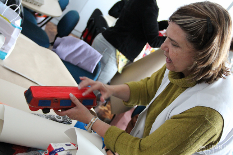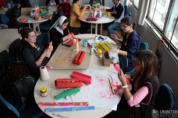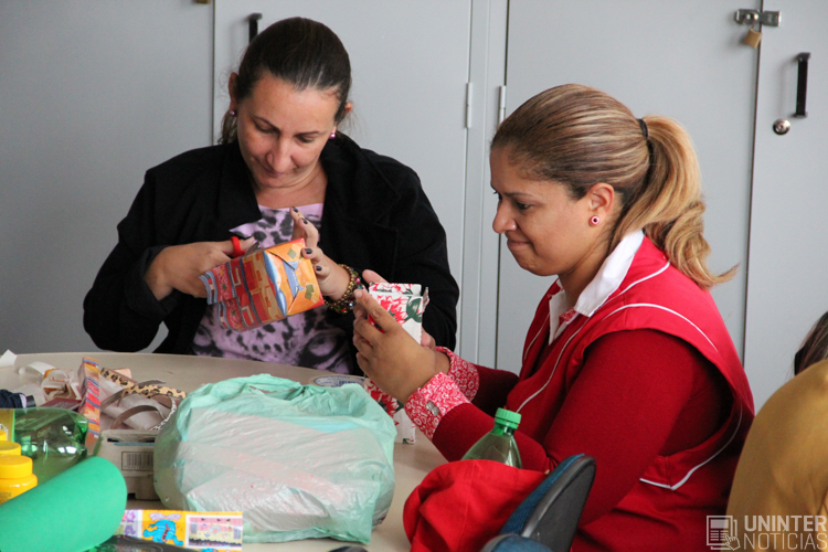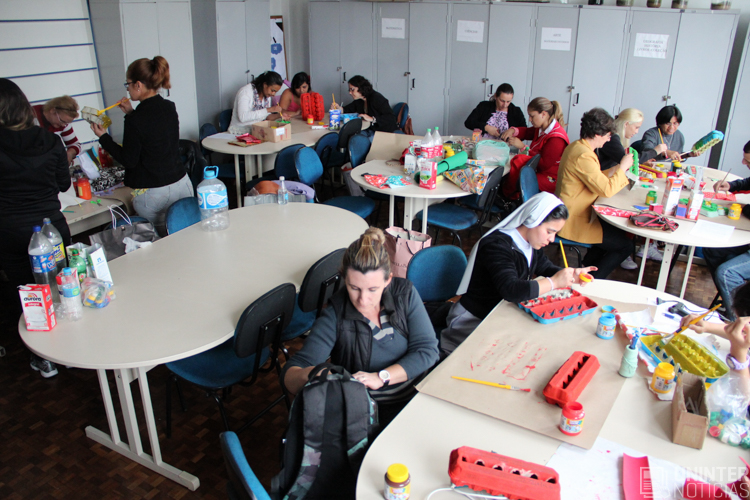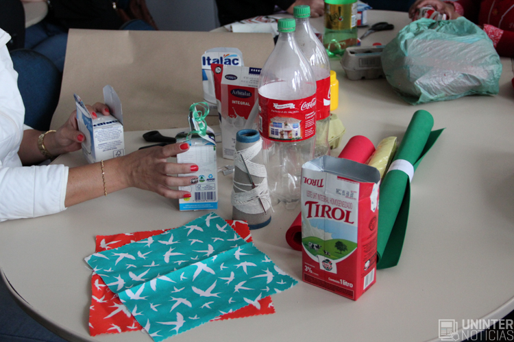 Os educadores confeccionaram caixas de presente decoradas com os materiais recicláveis. Fizeram também um pião com aproveitamento de palitos de churrasco e folhas de revista. “Valeu no grupo a criatividade de cada um, tendo como resultado lindos trabalhos”, conta a assistente social do IBGPEX, Ida Lurdes Bonamigo de Sousa.