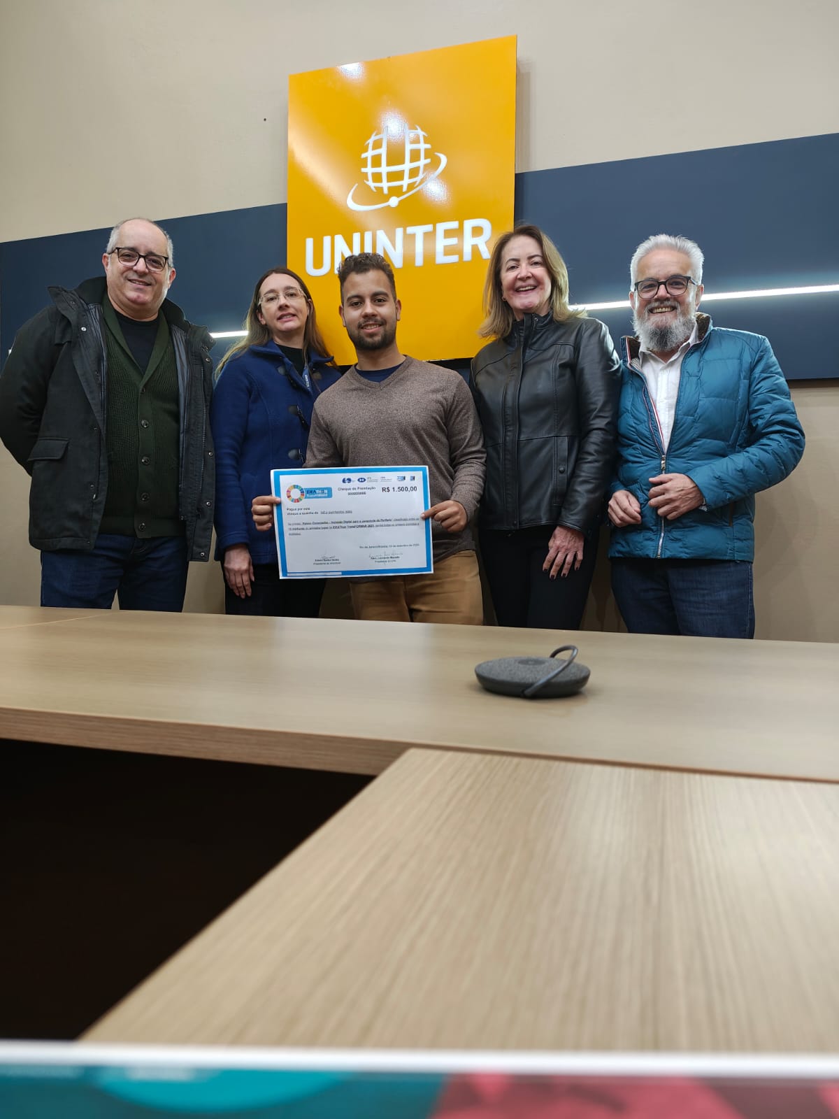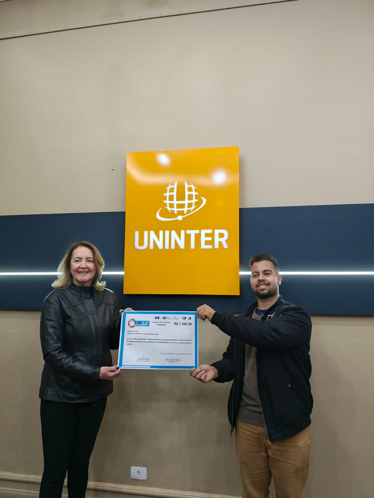 Ele destaca o papel da graduação em Administração da Uninter na construção da base técnica e no desenvolvimento de habilidades de comunicação, bem como a proximidade com professores e o apoio recebido ao longo da elaboração do projeto.