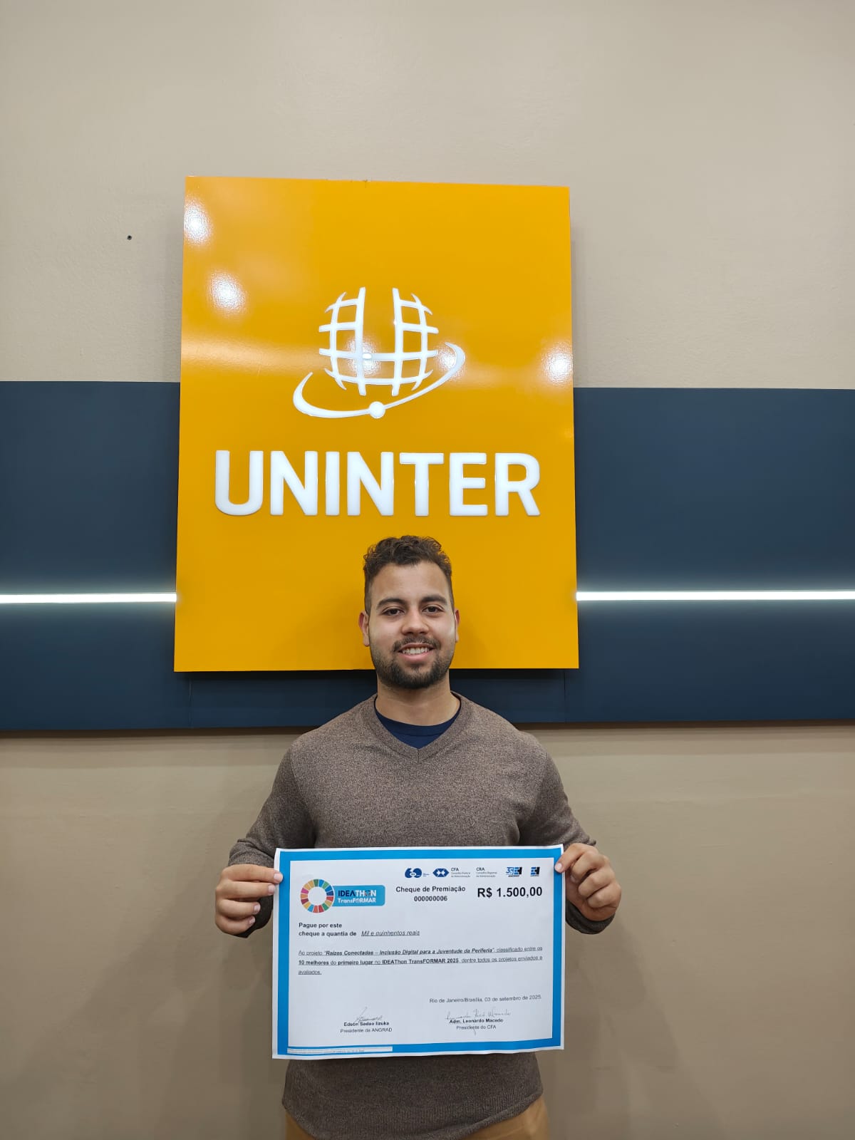 O projeto Raízes Conectadas – Inclusão Digital para a Juventude da Periferia, idealizado por Luan Henrique, estudante do curso de Administração da Uninter, foi premiado entre os dez melhores trabalhos apresentados no IDEAthon TransFORMAR 2025. O evento, promovido pela Associação Nacional dos Cursos de Graduação em Administração (Angrad) em parceria com o Conselho Federal de Administração (CFA), estimula a criação de soluções inovadoras com foco em ESG e nos Objetivos de Desenvolvimento Sustentável (ODS).