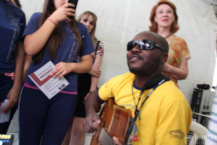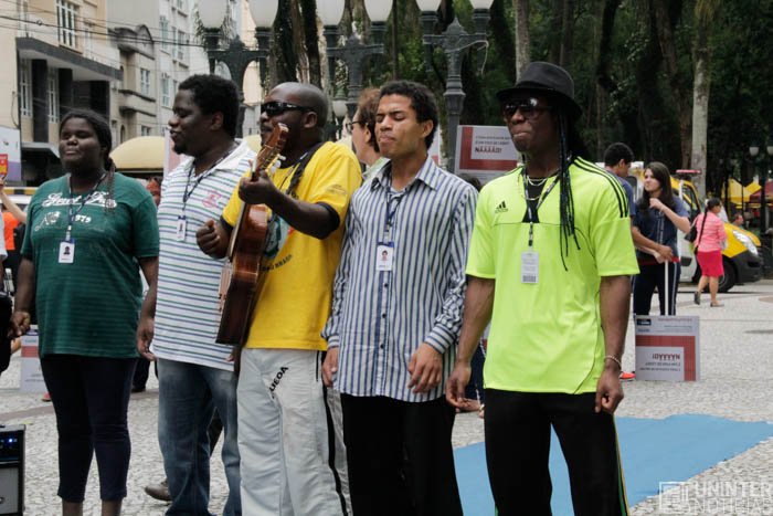 Quem estava passando em frente ao campus Garcez pôde ver o desfile das peças do projeto Fazendo Renda e a apresentação do grupo Vozes de Angola.
