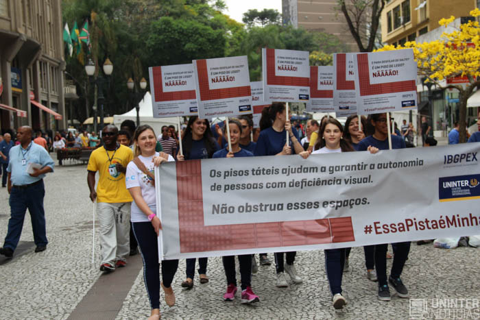 Os organizadores também promoveram uma manifestação para o lançamento da campanha Essa pista é minha.  Por meio de uma passeata, o objetivo era chamar a atenção da população e conscientizar para o uso correto do piso tátil, que é exclusivo para pessoas com deficiência visual. “Esse é um dos recursos que eles utilizam como alerta do senso direcional quando não existe outra linha de referência”, explica Adenir dos Santos, diretora do Instituto IBGPEX e idealizadora da campanha.