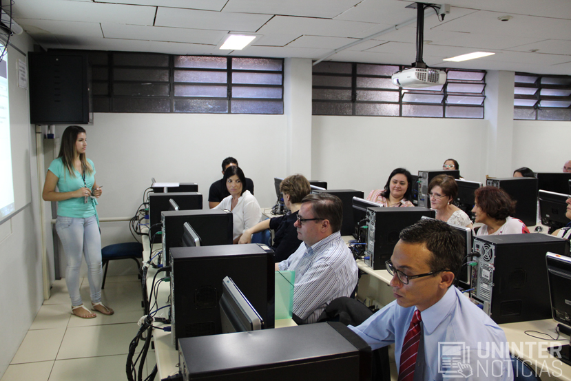 A primeira atividade ocorreu no laboratório I, do Campus Divina, e contou com a participação da equipe de Educação Corporativa, composta por Everson Martins e Jessye Camargo Ribas. A apresentação teve como tema: O uso do AVA – Ambiente Virtual de Aprendizagem: Noções Iniciais.